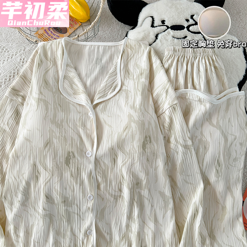 可外穿夏天家居服套装 秋冬季 网红2025年新款 睡衣女士春秋纯棉长袖
