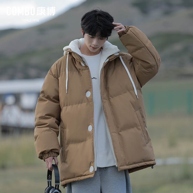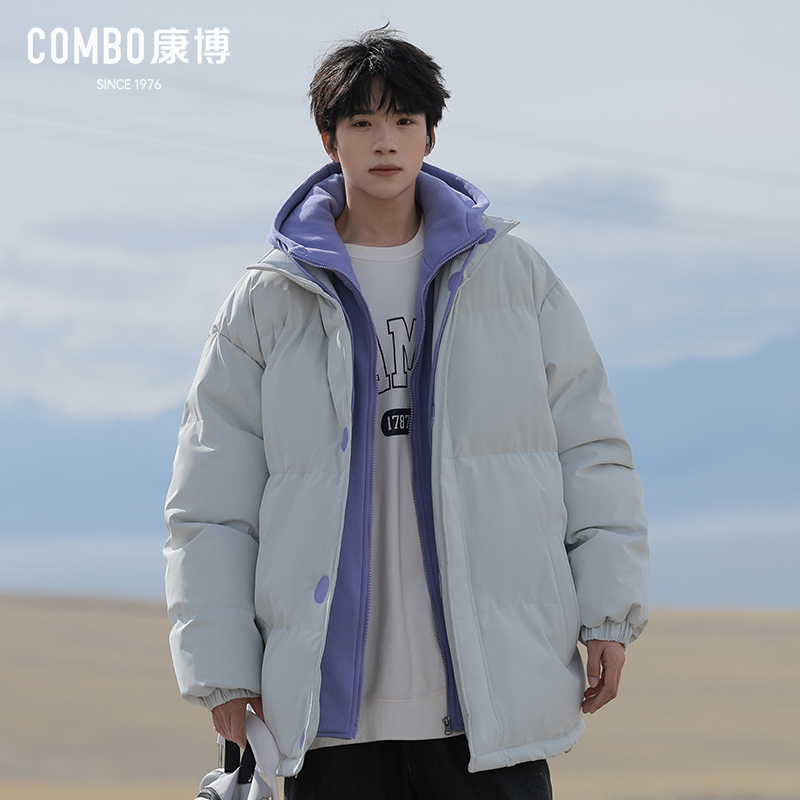 加厚保暖连帽棉袄青少年潮流棉衣 新款 combo 康博假两件棉服男冬季