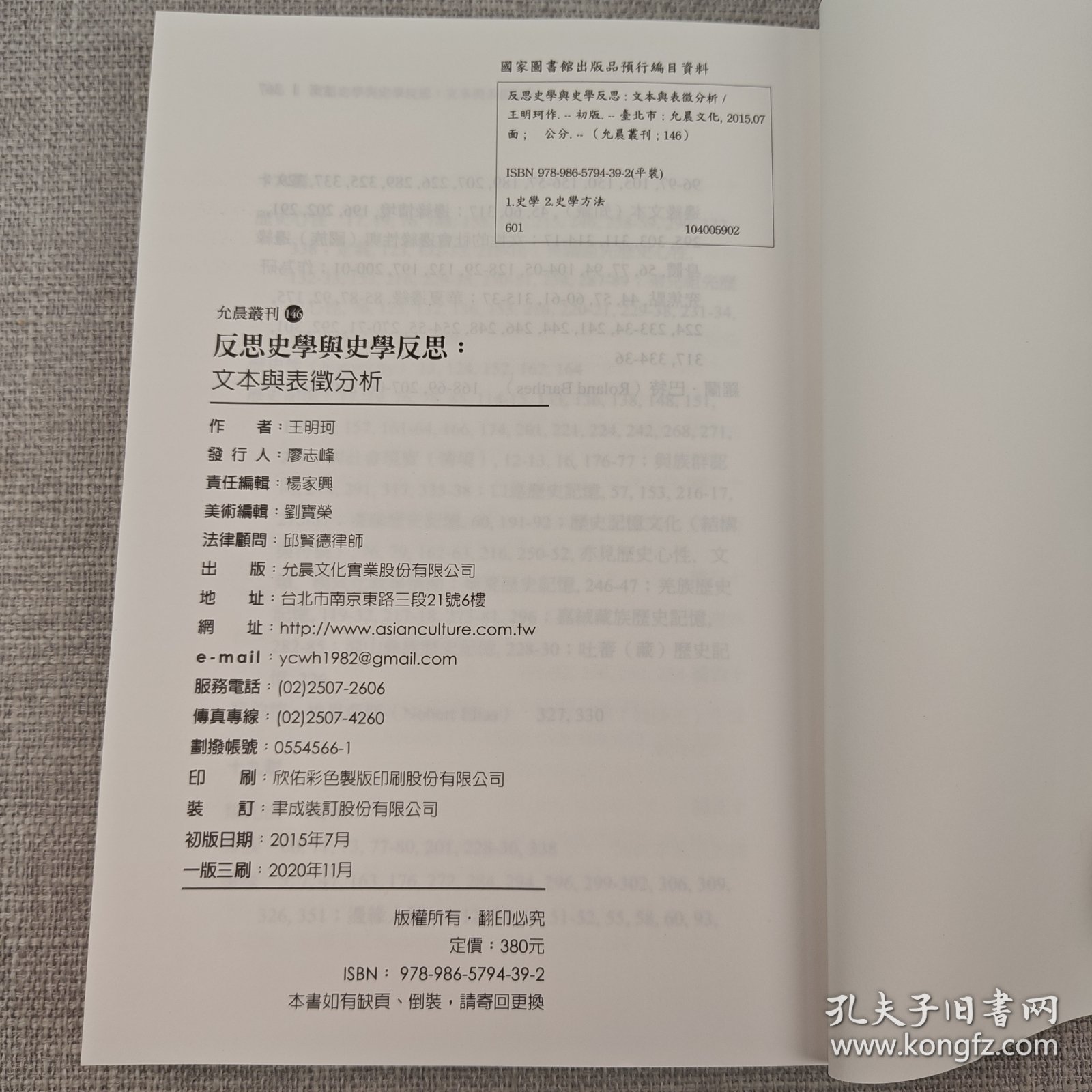 锁线胶订 反思史學與史學反思:文本與表徵分析 台湾允晨文化版 王明珂 现货 正版 港台原版