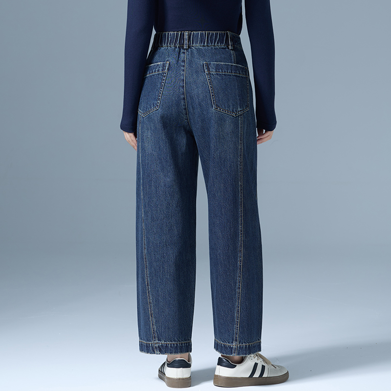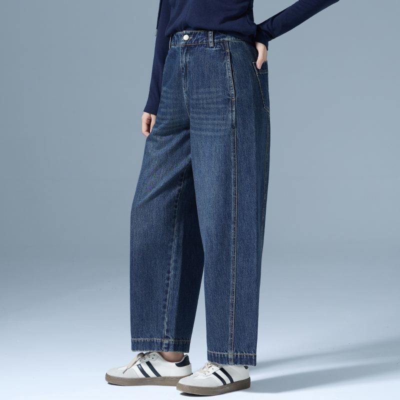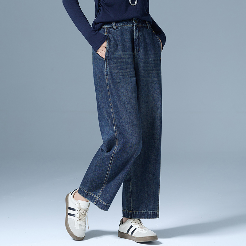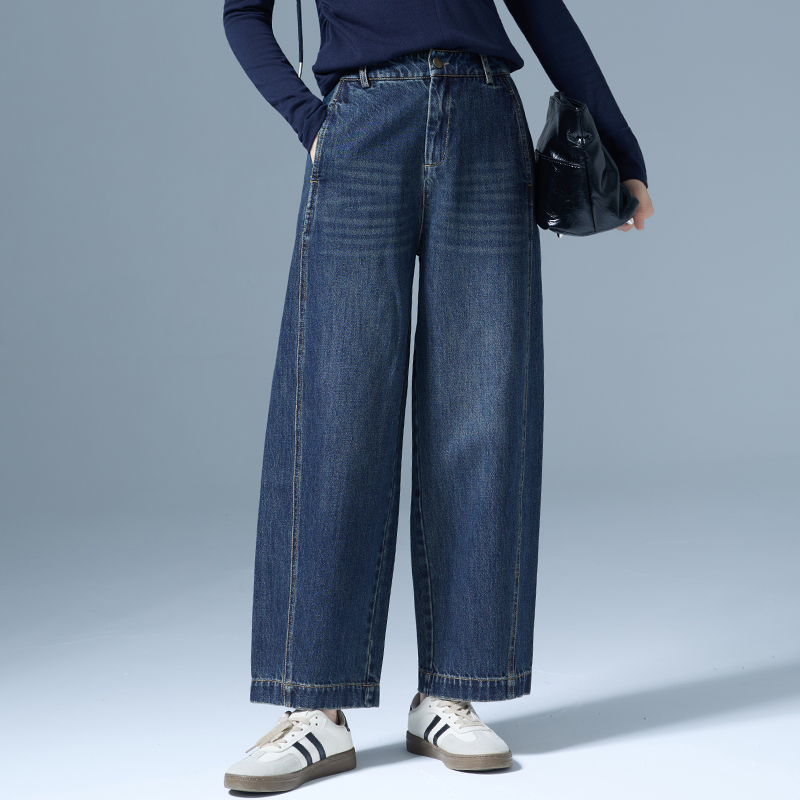more阔腿牛仔裤 深蓝色复古弯刀裤 女2025新款 流行风格 子X 秋季 one