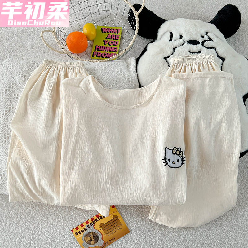 女士可爱卡通全棉家居服套装 睡衣女春秋季 2025新款 长裤 纯棉长袖