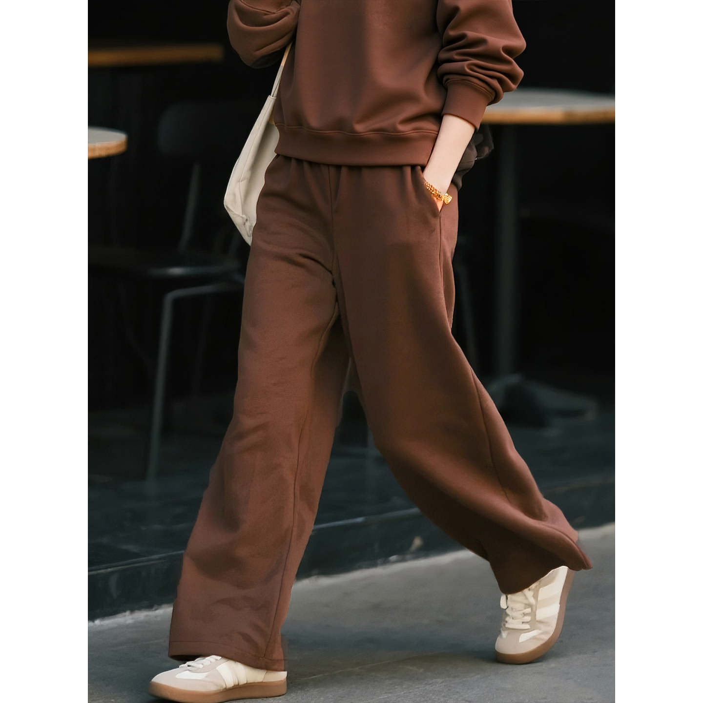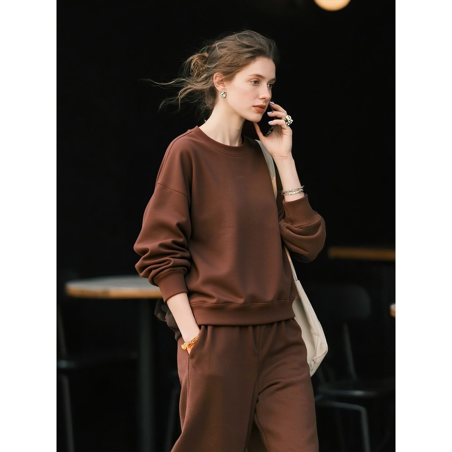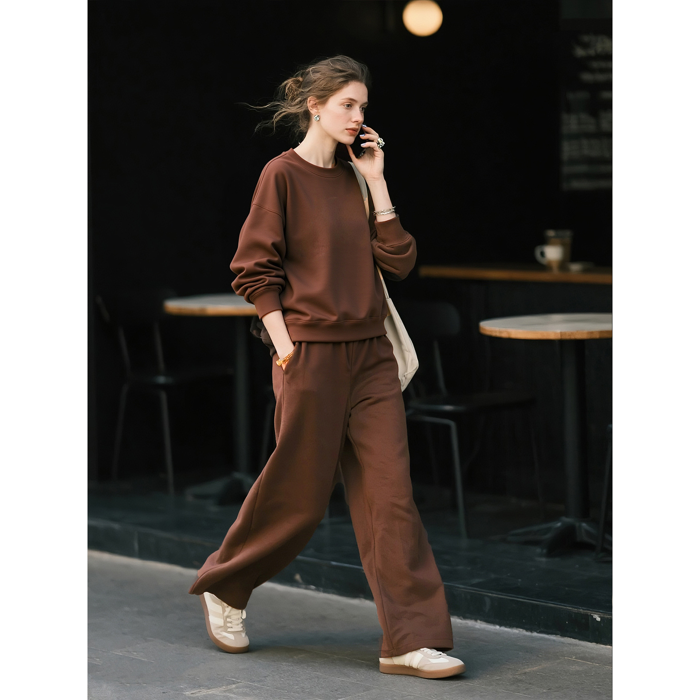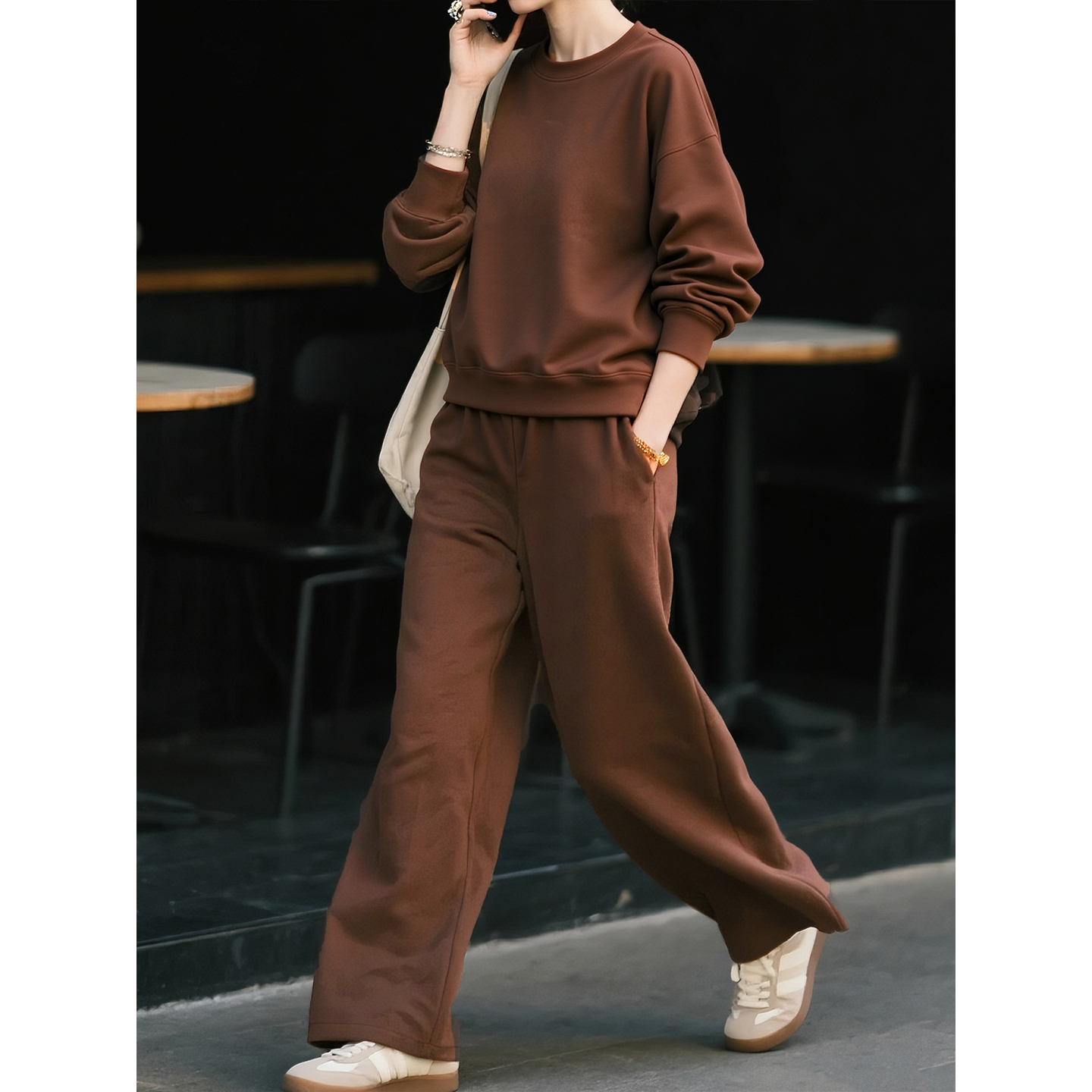 高级宽松卫衣直筒卫裤 深棕色早秋时尚 新款 女2025年秋季 两件套 套装