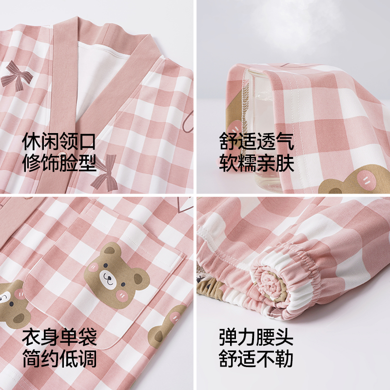 女生睡衣 秋冬季 森马女士家居服套装 可爱甜美少女格子粉色2025新款
