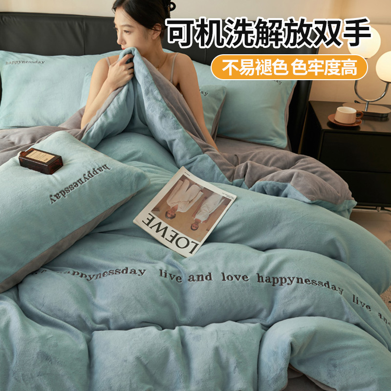 洁丽雅冬季 加厚牛奶绒被套单件加绒法兰绒被罩150x200冬天珊瑚绒