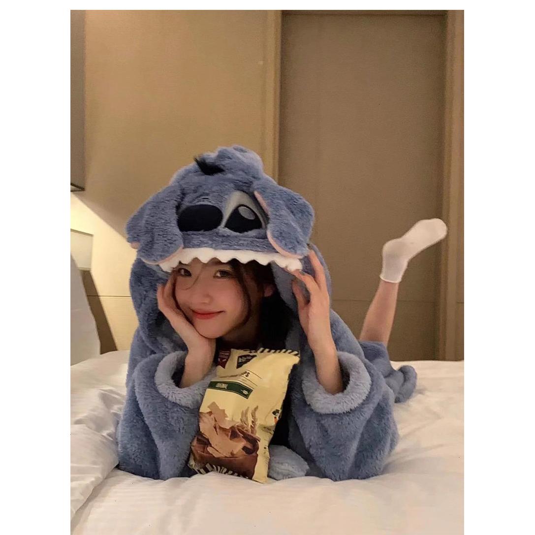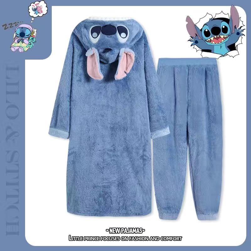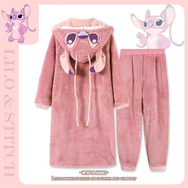 冬季 法兰绒 睡袍女加绒加厚史迪仔睡衣珊瑚绒可爱情侣家居服套装