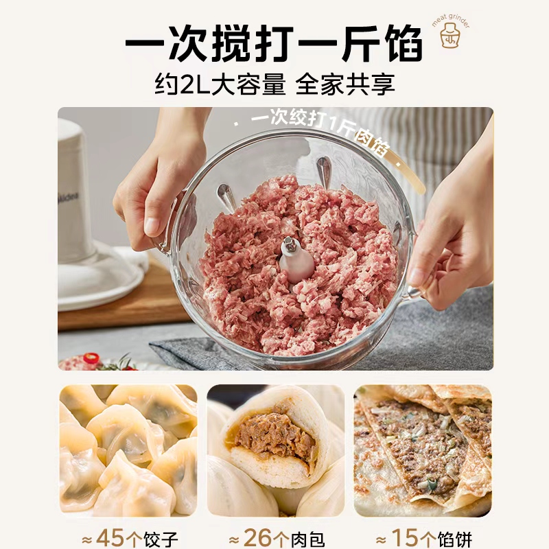 美 碎肉机全自动多功能绞馅机料理搅拌机 电动绞肉机家用小型新款