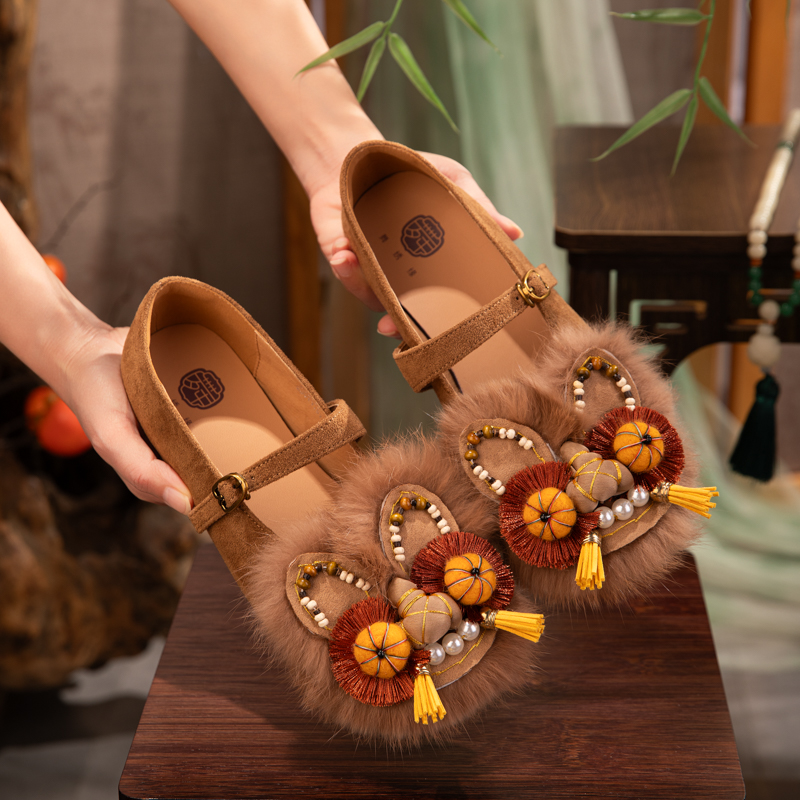 舒适软底透气一字带单鞋 古风汉服鞋 子女圆头平底浅口民族风绣花鞋