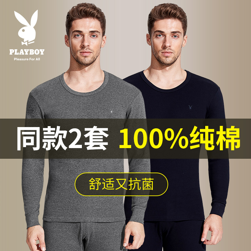 男士 冬季 套装 打底保暖内衣男款 100%纯棉全棉毛衫 花花公子秋衣秋裤