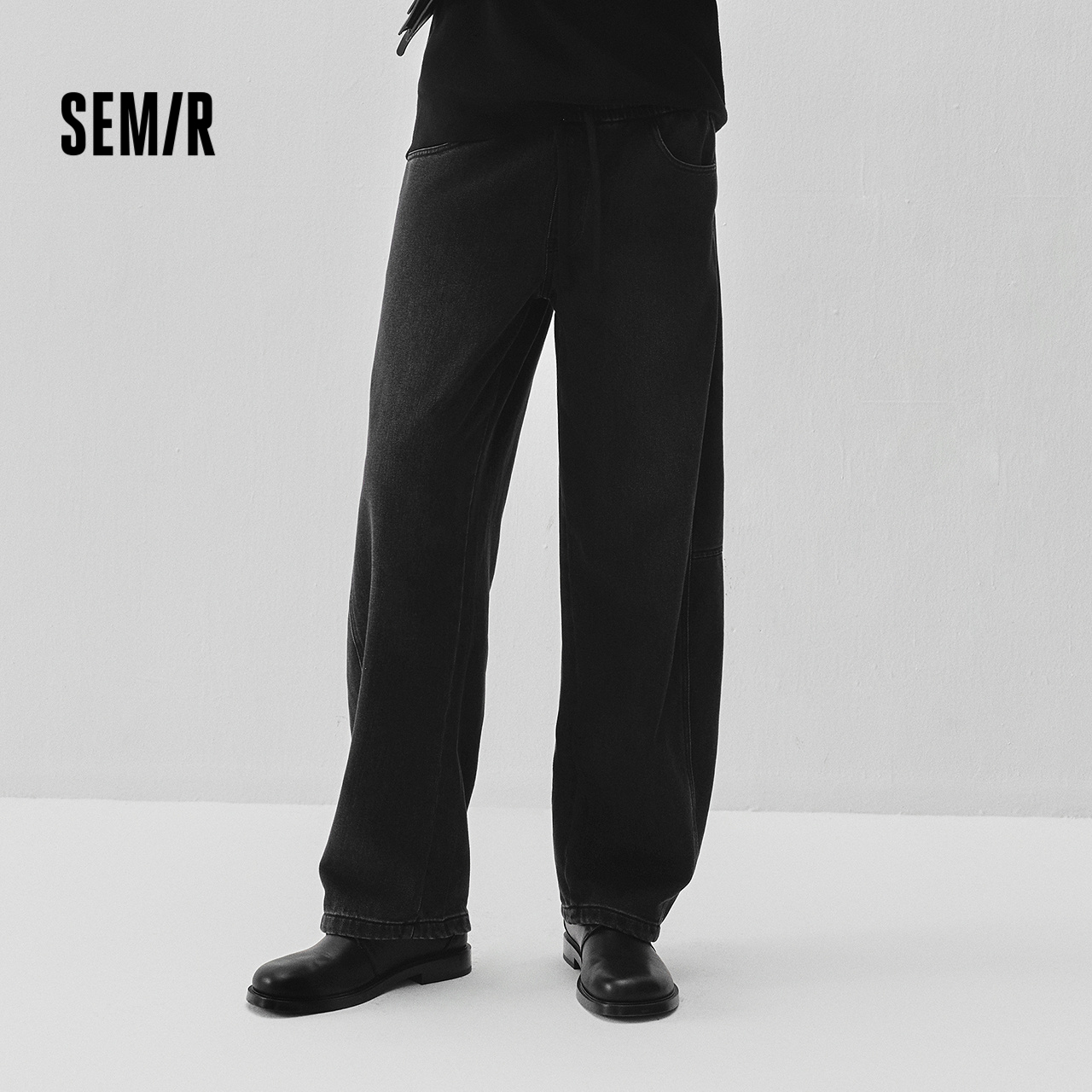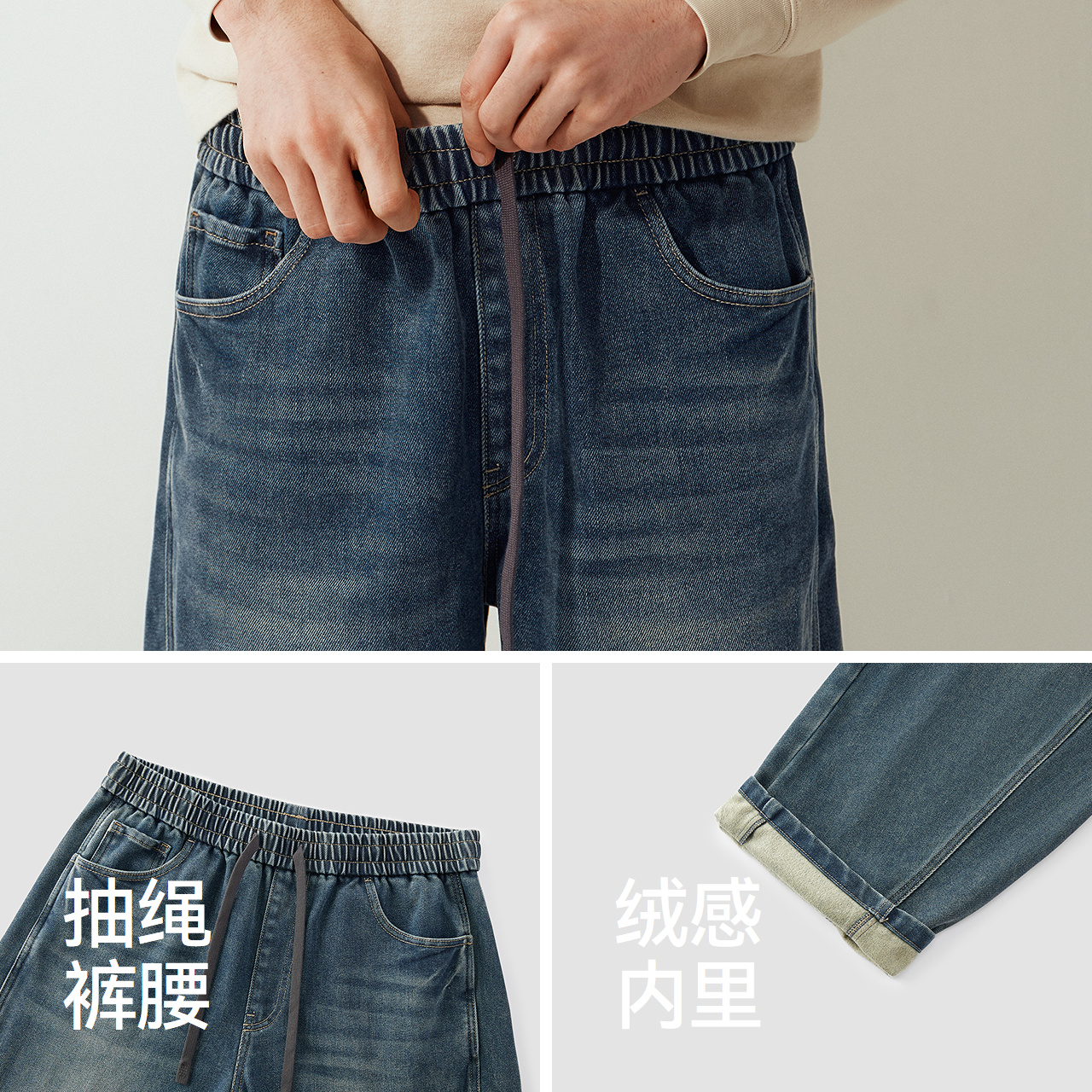 森马牛仔裤 怀旧复古长裤 男冬季 2025新款 宽松弧形弯刀裤 商场同款