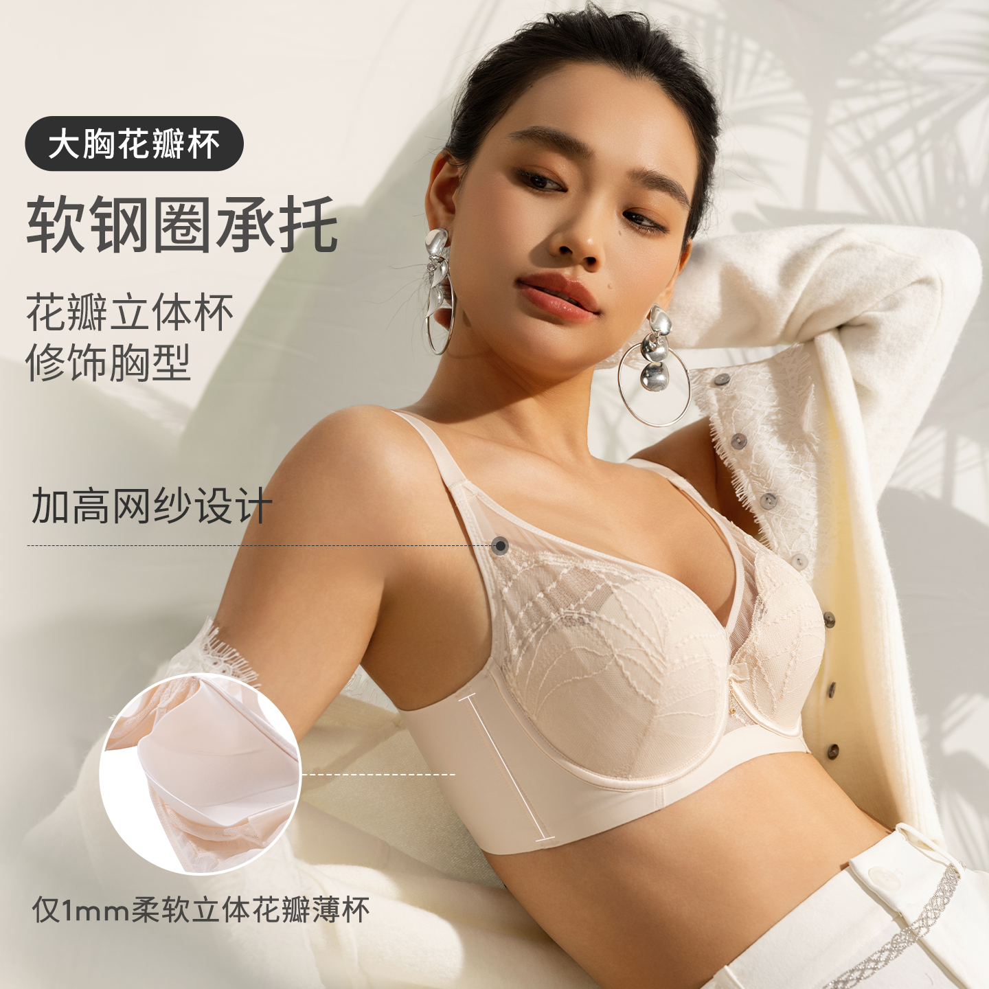 安娜蜜语调整型全罩杯女士内衣薄款 收副乳大胸显小显瘦防下垂文胸