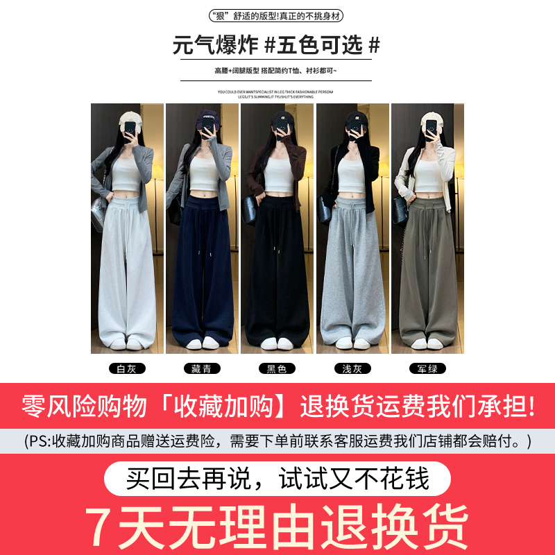 小个子高腰休闲直筒阔腿卫裤 2025年新款 女春秋季 浅灰色螺纹运动裤