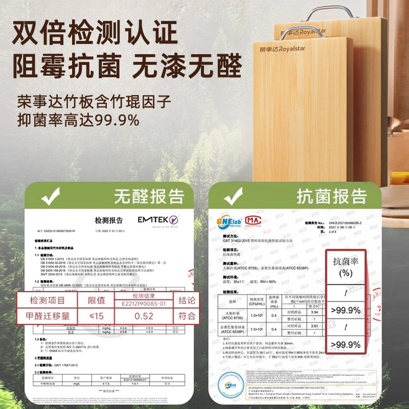 荣事达切菜板防霉抗菌家用竹砧板实木案板厨房专用食品级水果面板