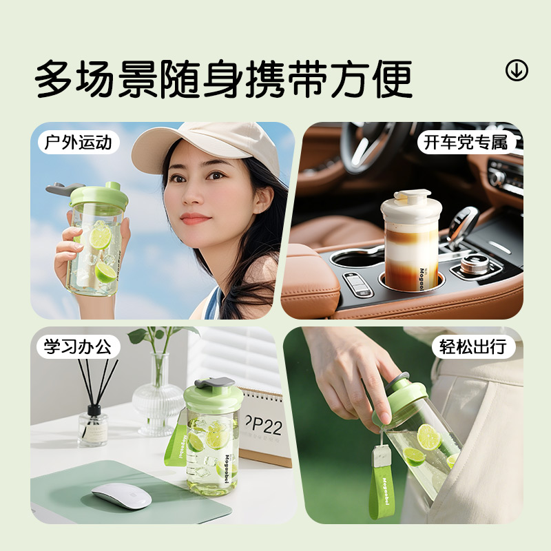 希乐水杯便携男女生儿童学生上学专用tritan塑料杯子夏日运动水壶
