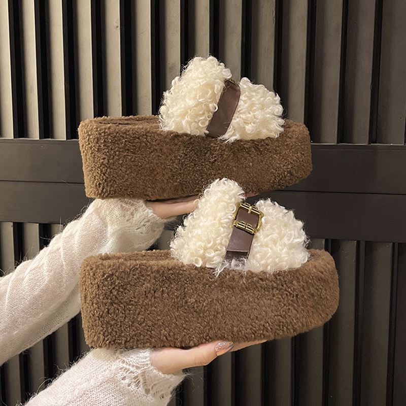 外穿棉拖毛绒鞋 新款 子高跟黑色 女2025年秋冬季 厚底7cm毛毛拖鞋