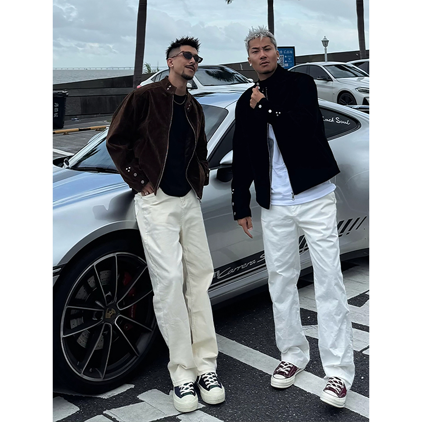 夹克上衣 潮牌美式 李一桐同款 INXXAPYD复古做旧牛仔外套男女同款