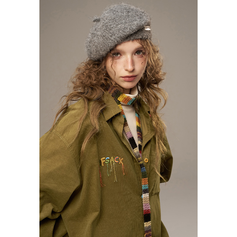 女2025秋新款 口袋彩色流苏绣复古衬衫 妖精 设计感外套 100棉