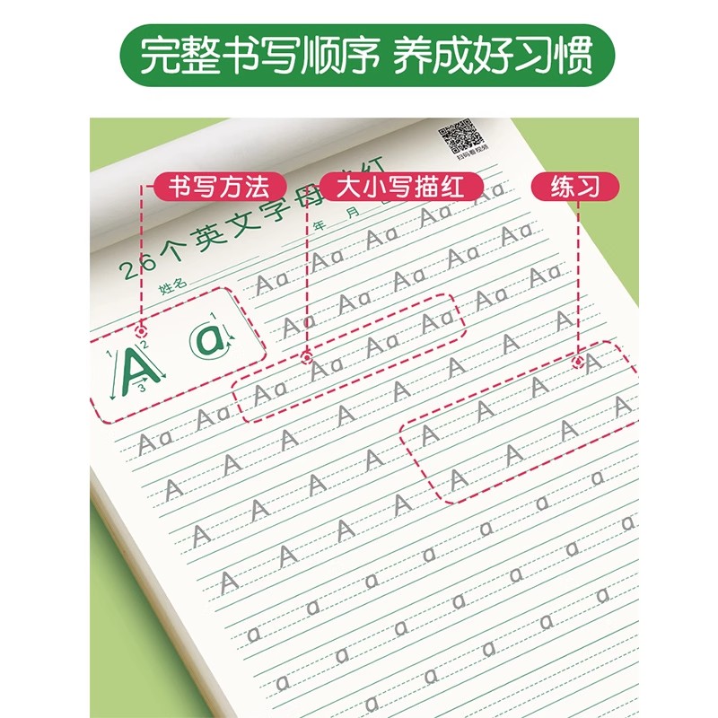 六品堂 26个英语字母字帖衡水体英语字帖一二三年级单词练习英文字母天天练大小写临摹练习册小学生入门初学者手写体描红本练字帖