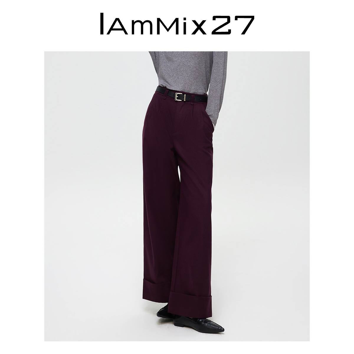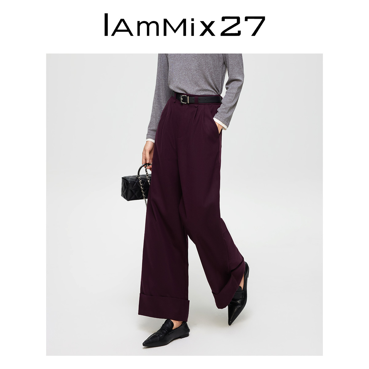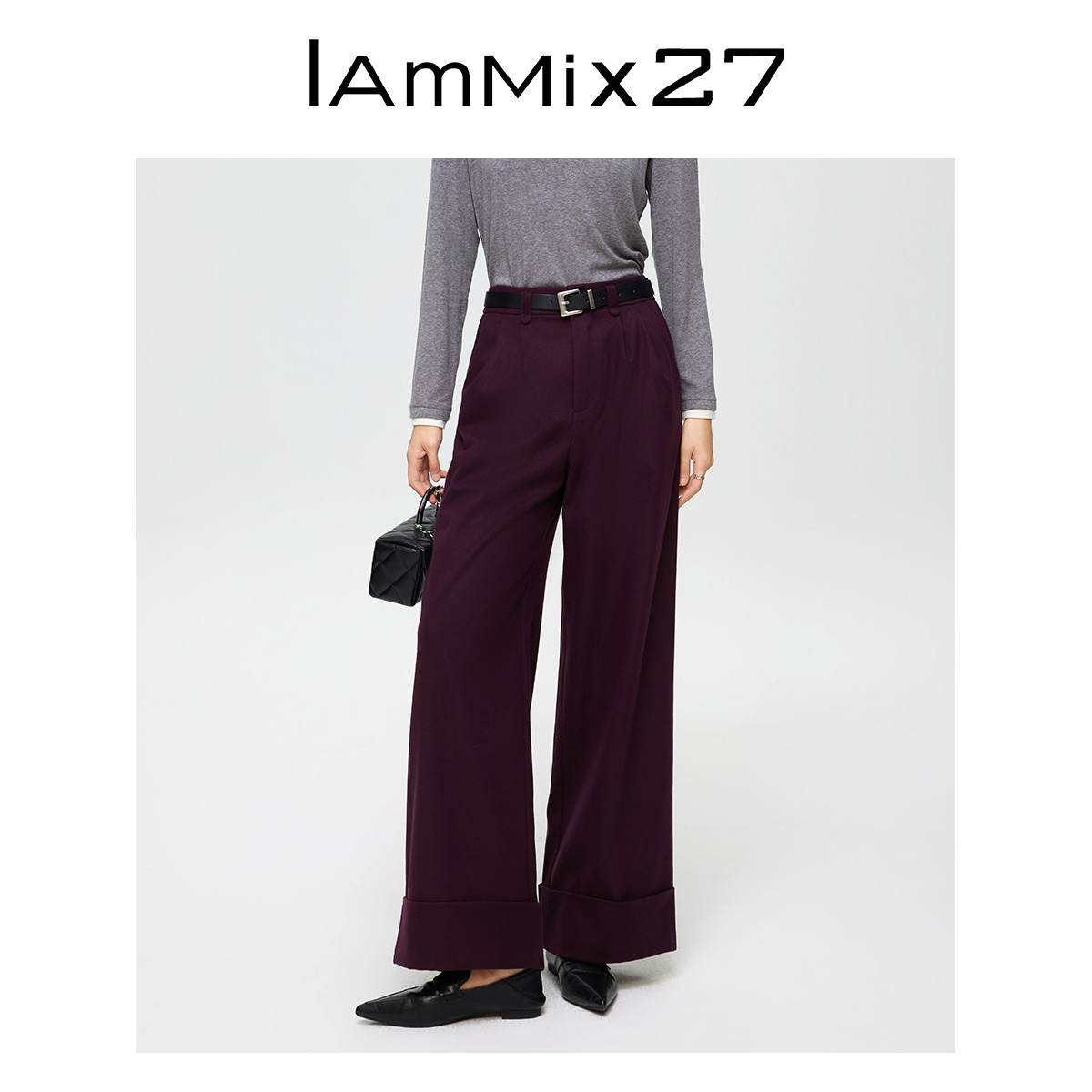 IAmMIX27秋冬高腰直筒裤 女宽松加厚拉绒半松紧腰卷边阔腿休闲长裤