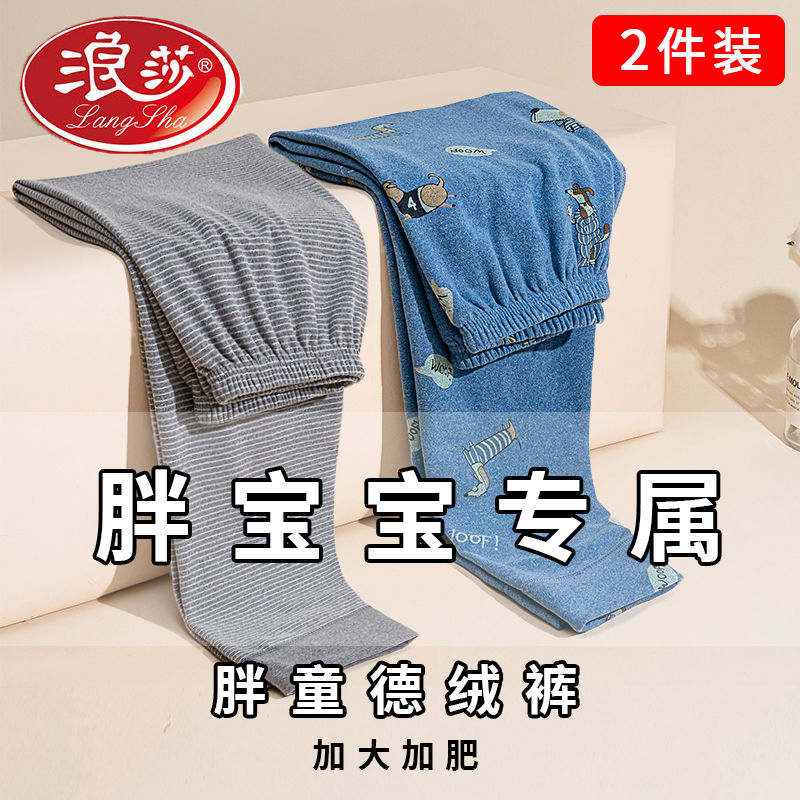 浪莎加肥加大胖男女童保暖裤 中大童高腰保宽松加厚德绒秋冬打底裤