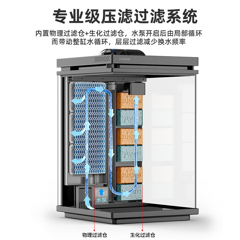 森森鱼缸客厅2025新款 免换水自循环生态智能超白玻璃小型桌面鱼缸