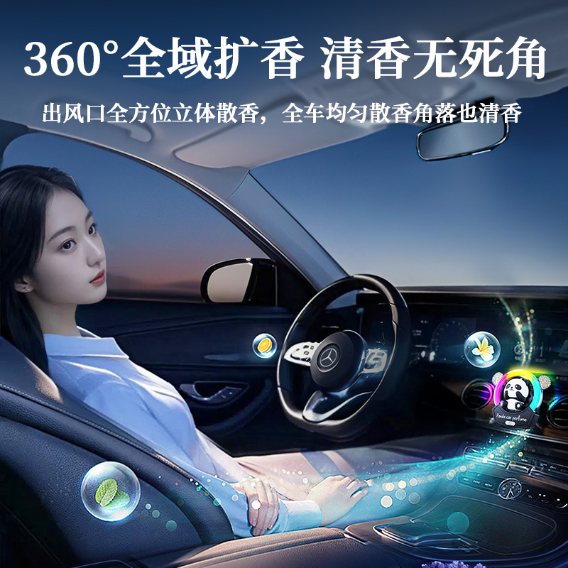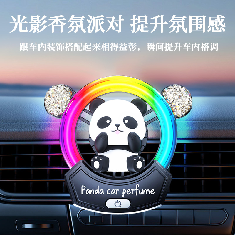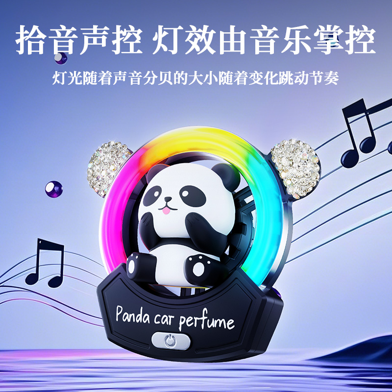 熊猫汽车出风口香薰氛围灯音乐节奏灯拾音灯香水汽车摆件高级装 饰