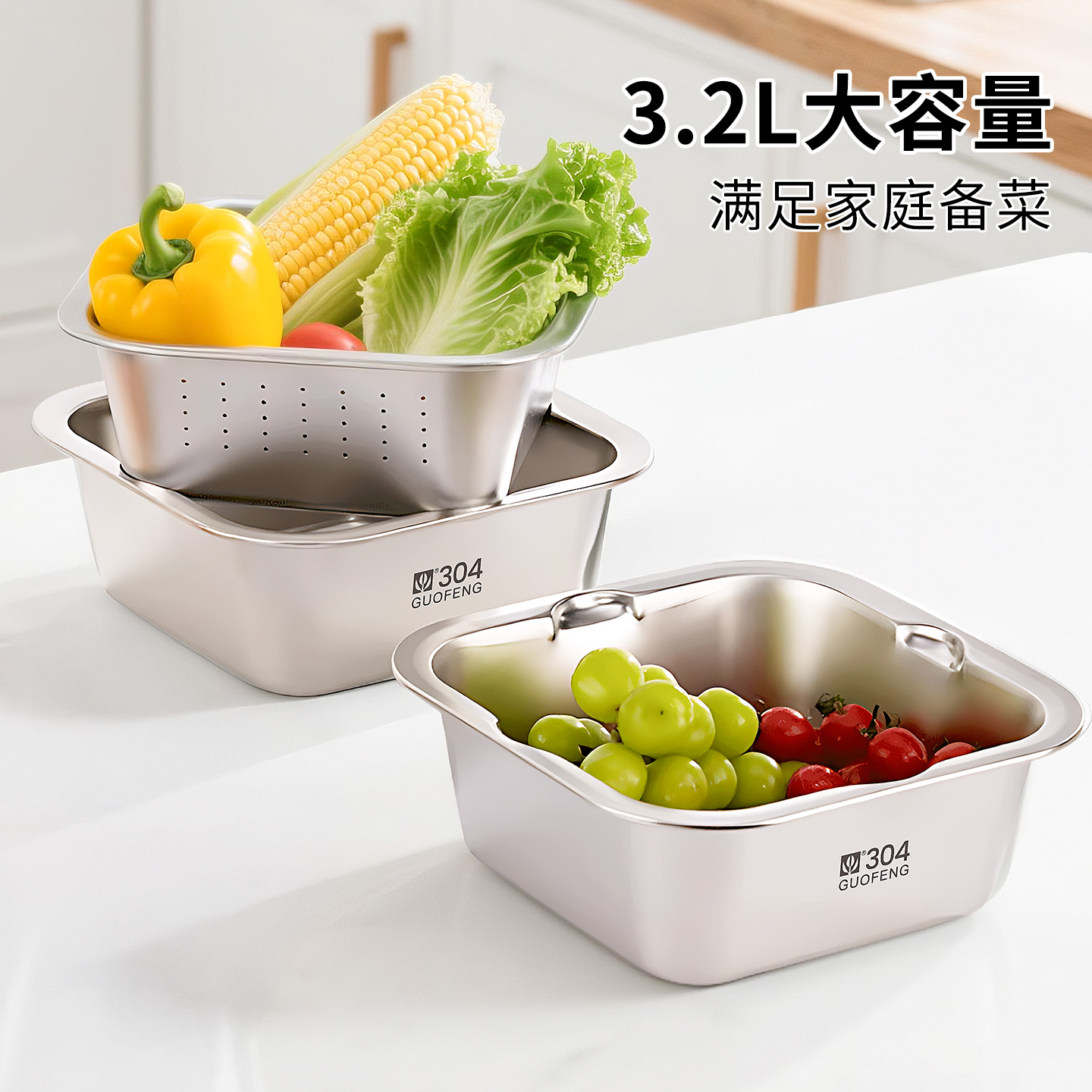304不锈钢沥水篮洗菜盆洗米筛厨房神器水果篮淘米盆沥水漏盆和面