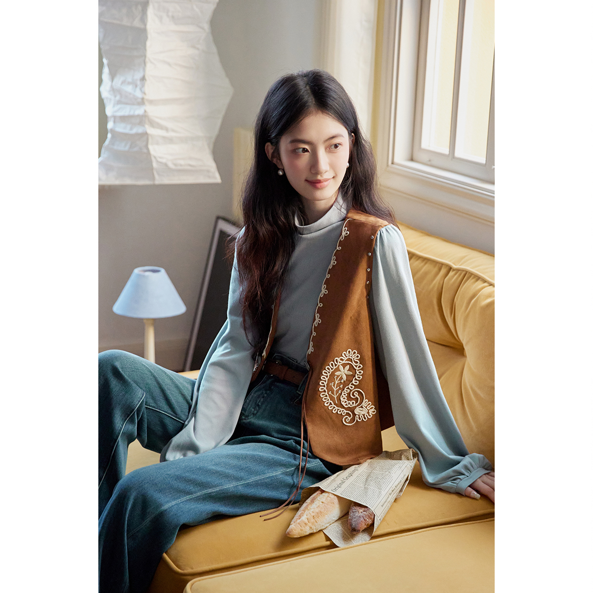 欧货中长款 宽松坎肩白鸭绒外套大口袋马夹 羽绒马甲女2025秋冬韩版
