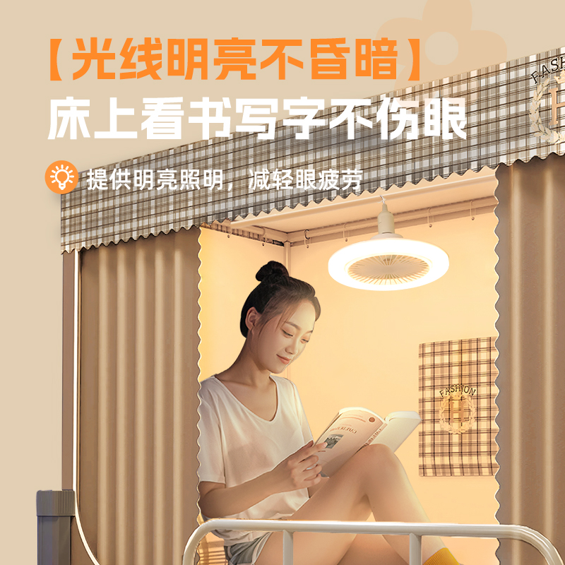 宿舍悬挂灯小风扇大学生高中生宿舍下铺上铺内用插电灯带遥控纹账
