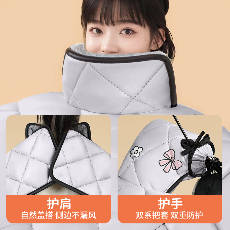 通用 电瓶摩托防风防水罩四季 电动车挡风被冬季 加绒加厚全包斗篷式