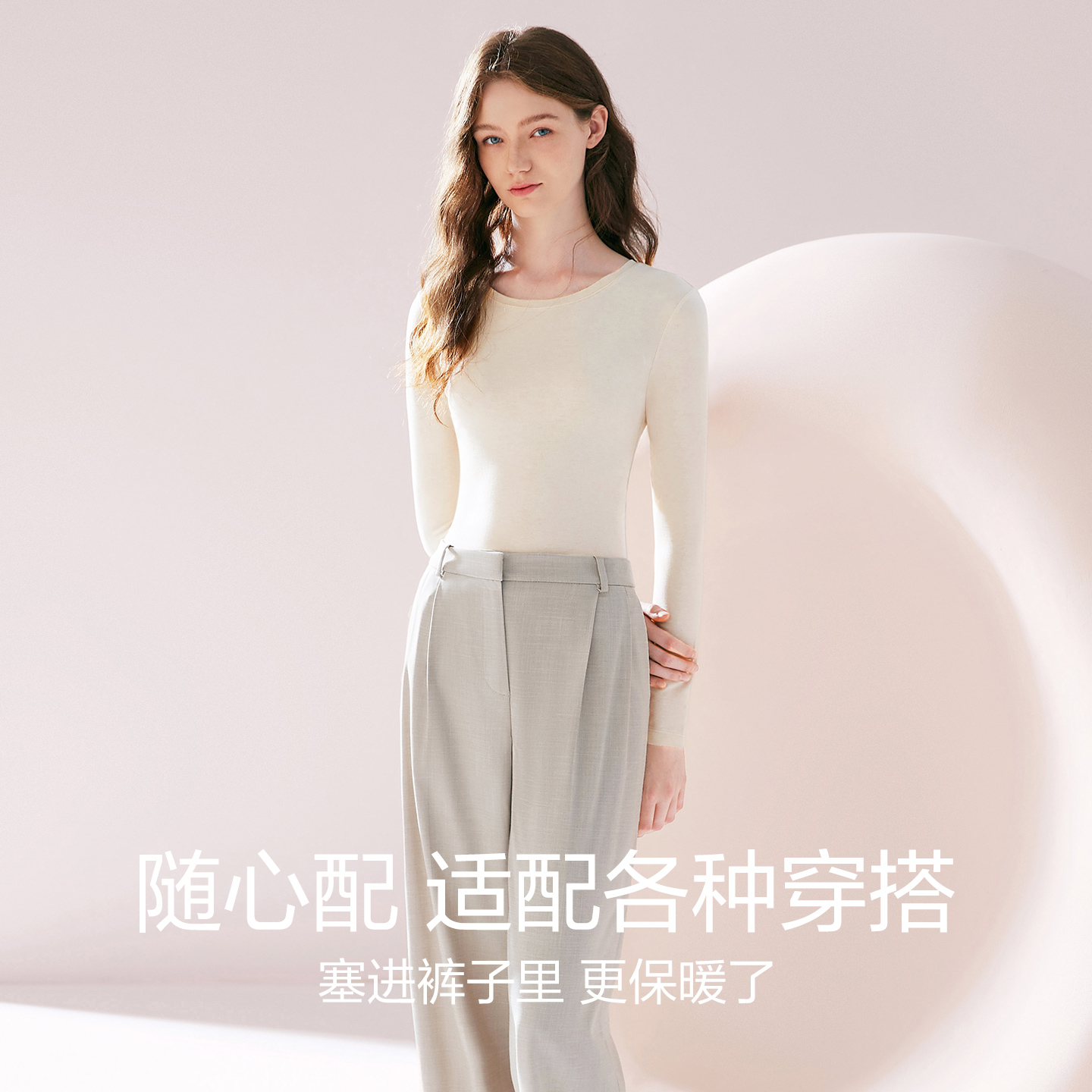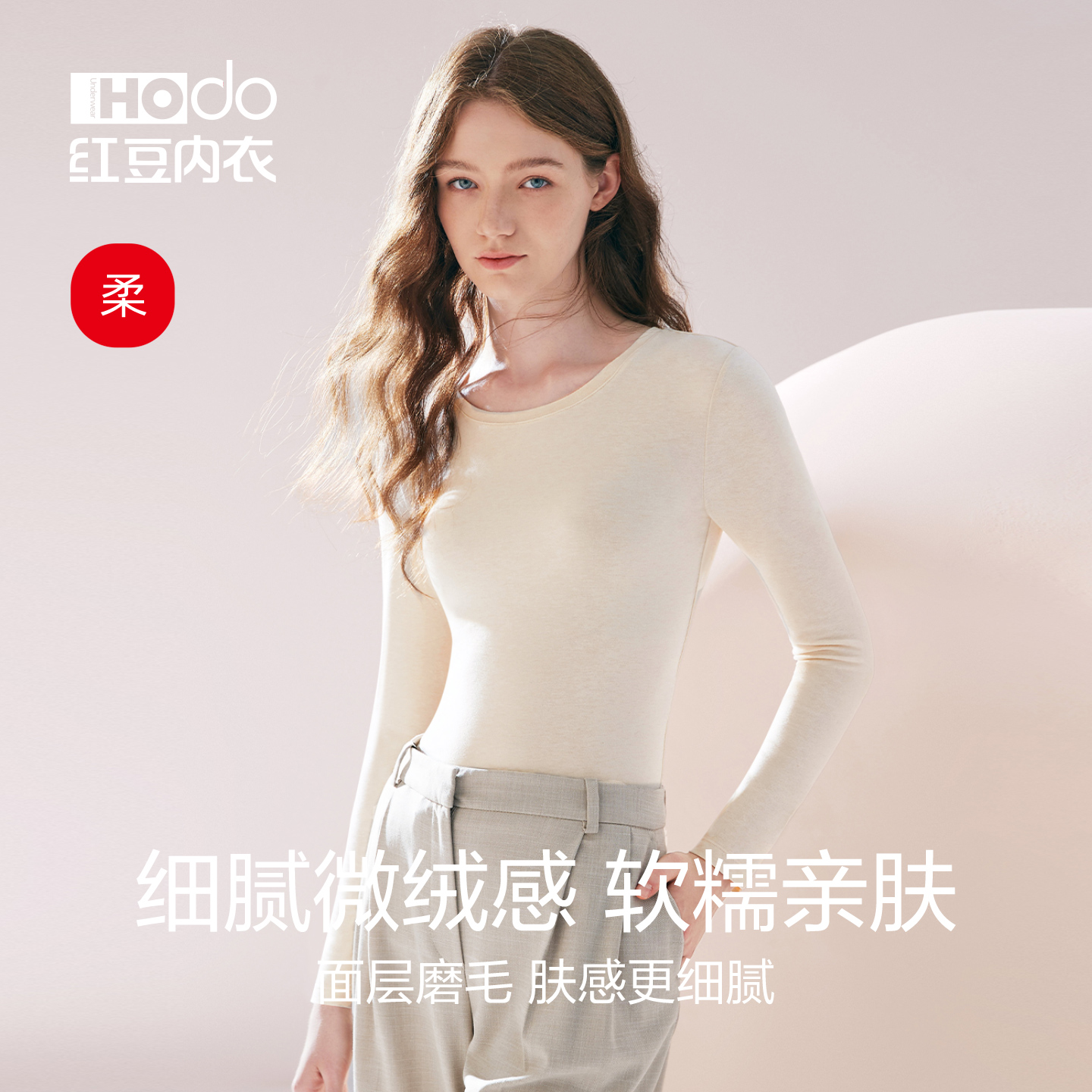 红豆绒棉花糖H2女士秋衣薄款 基础保暖上衣 色纺磨毛A类内搭打底衫