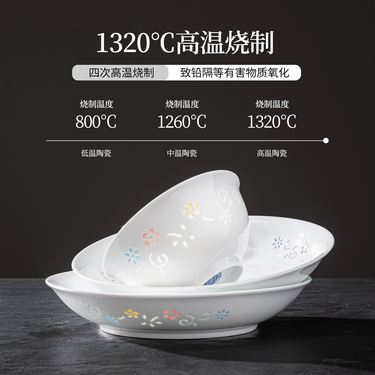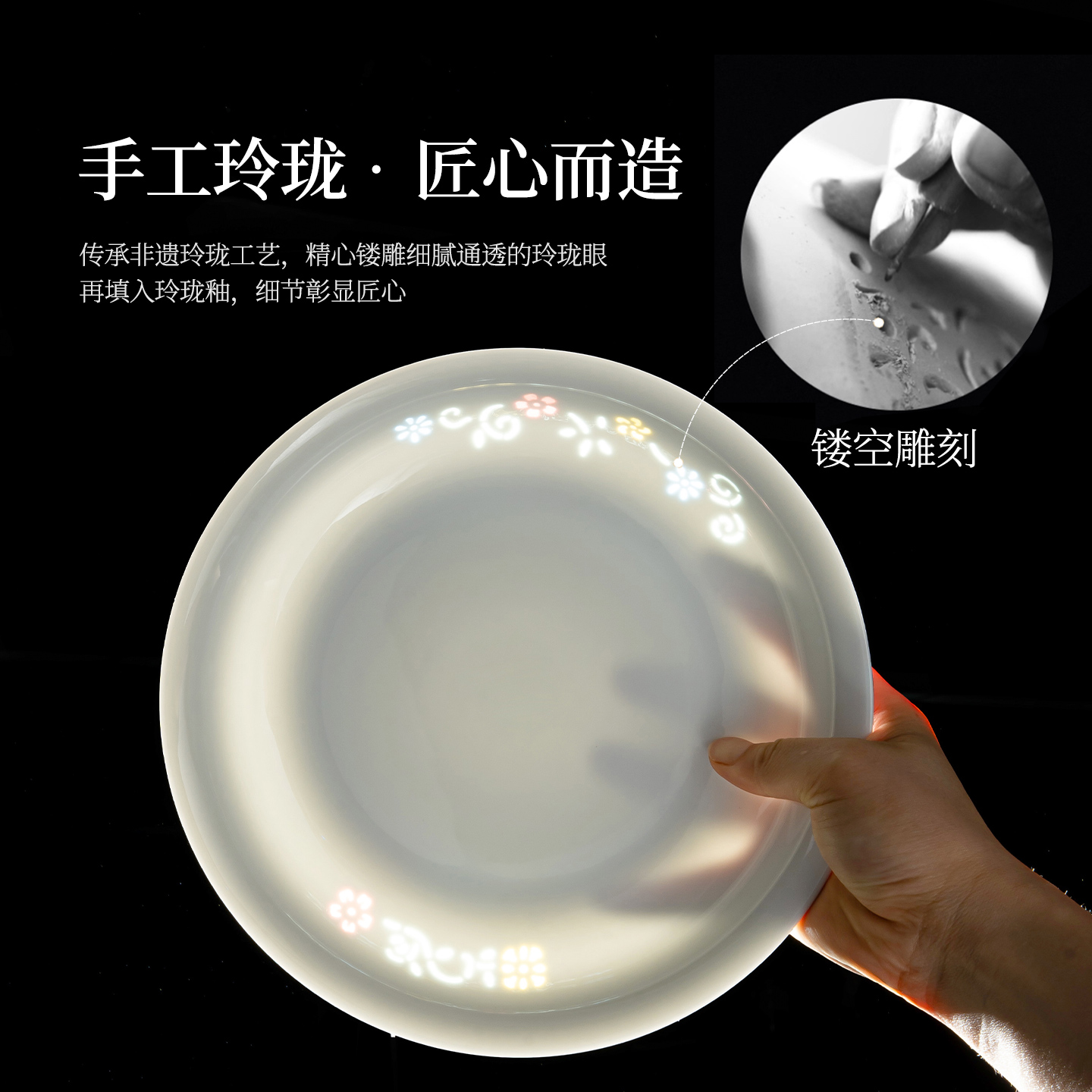 2025新款 七彩玲珑景德镇高白瓷健康多碗多盘陶瓷碗盘餐具组合 中式