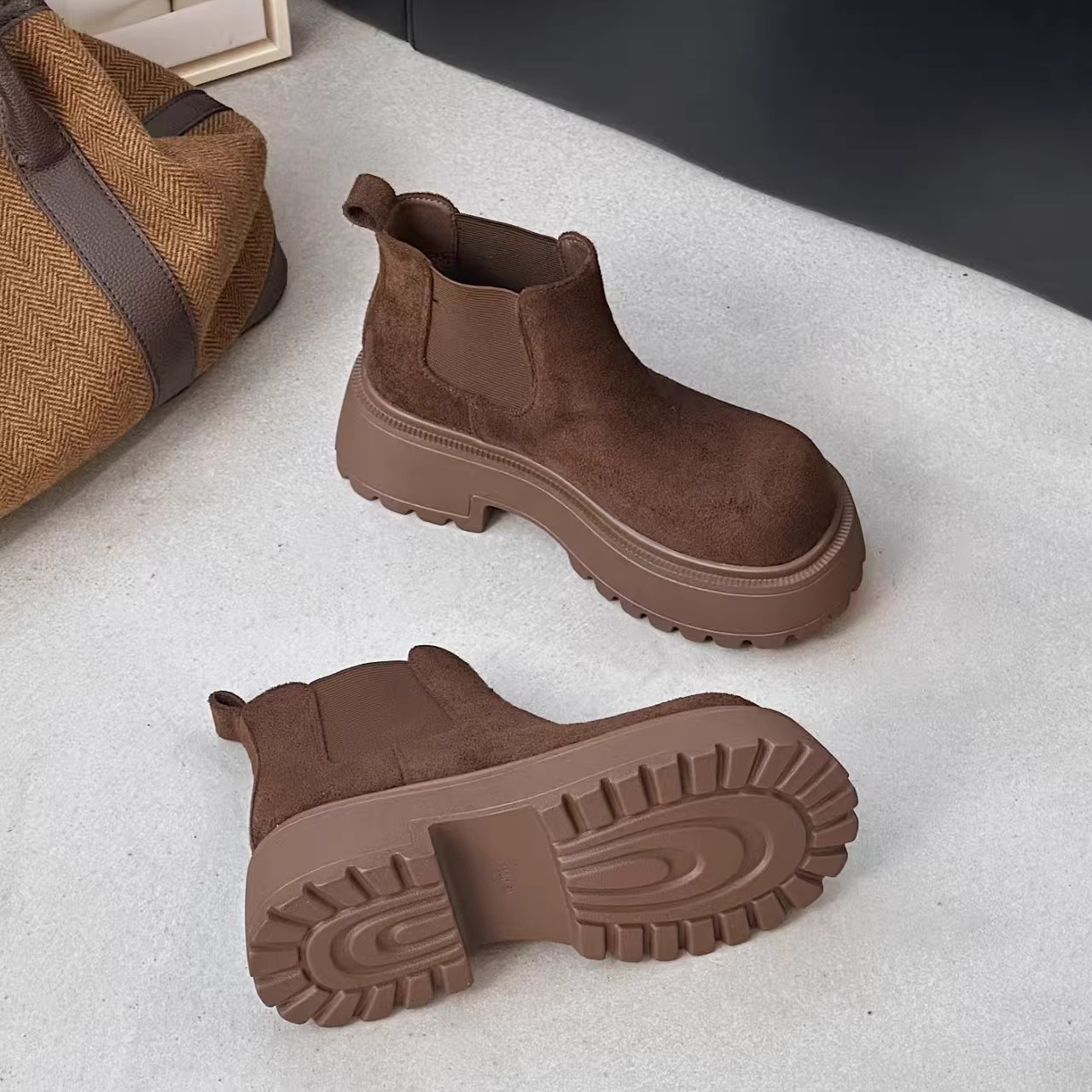 真皮厚底增高切尔西靴2025秋冬款 磨砂皮圆头一脚蹬轻便百搭马丁靴