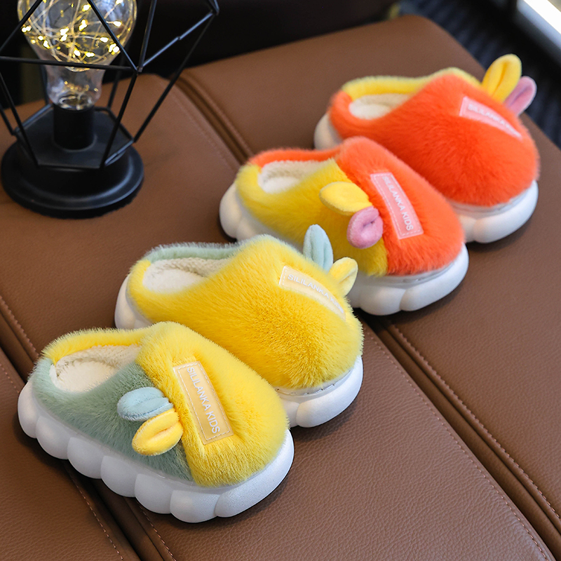 男女童厚底毛室内棉鞋 新款 可爱小孩毛拖鞋 秋冬季 防滑 儿童棉拖鞋