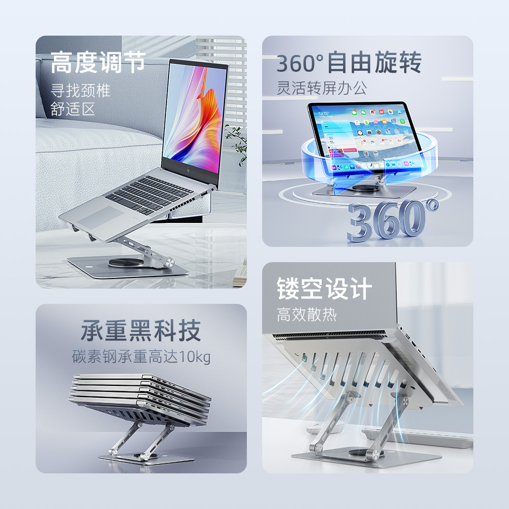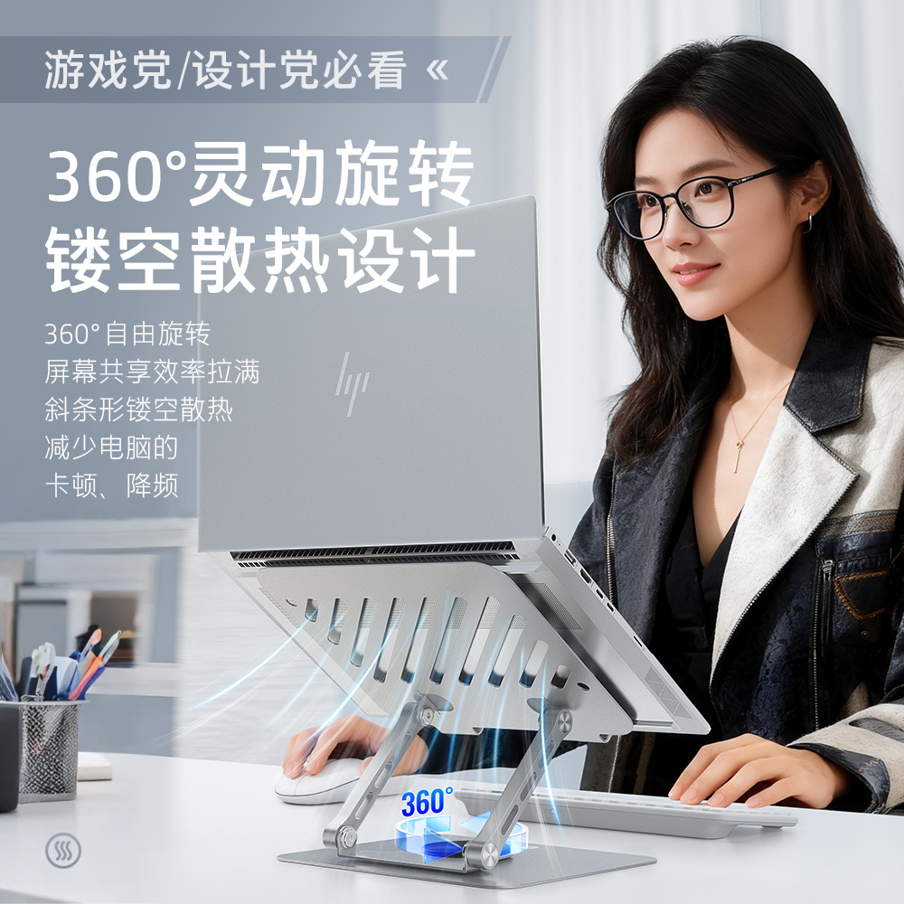 惠普笔记本电脑支架托悬空可旋转立式 升降散热支撑架平板游戏本无级悬停增高架苹果macbook工位桌面双层架子