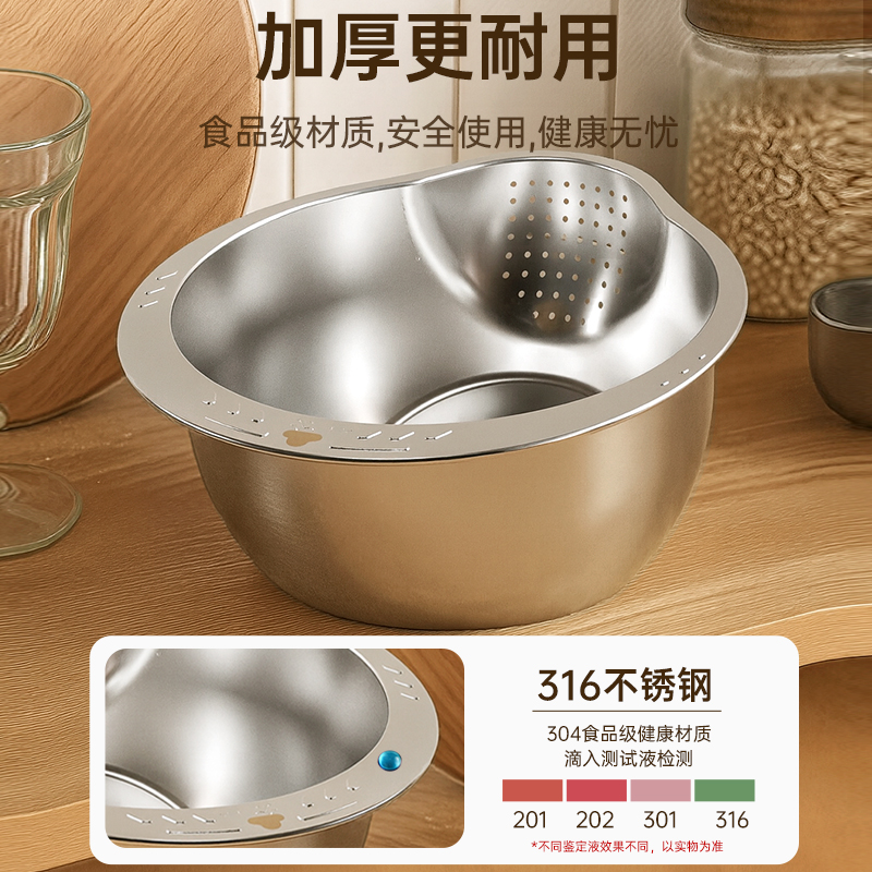 316不锈钢沥水篮洗菜盆多功能沥水盆食品滤水淘米篮厨房淘米神器