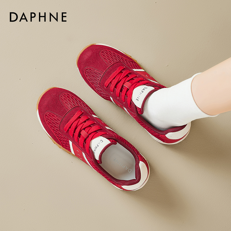女款 软底赛车运动鞋 2025新款 厚底阿透气甘鞋 秋季 达芙妮红色德训鞋