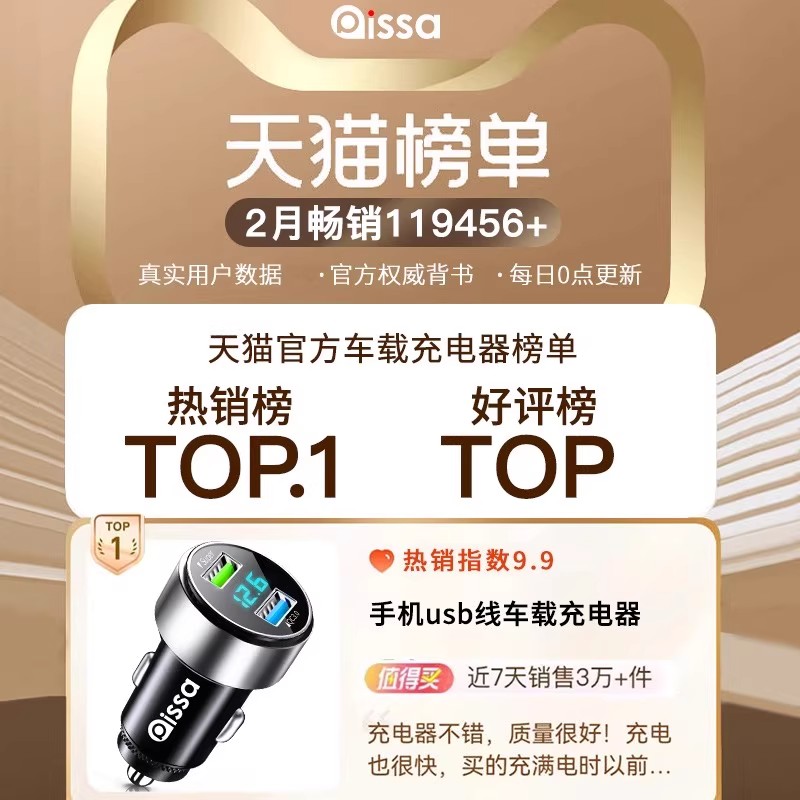 品胜车载充电器超级快充2025新款 一拖二汽车点烟器转换插头车充PD