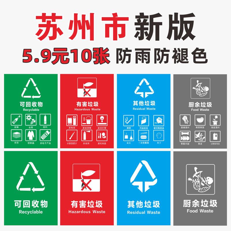 垃圾分类标识贴纸北京上海杭州苏州成都武汉垃圾桶标志不可有害易腐厨余其它干湿垃圾环卫宣传标语定制