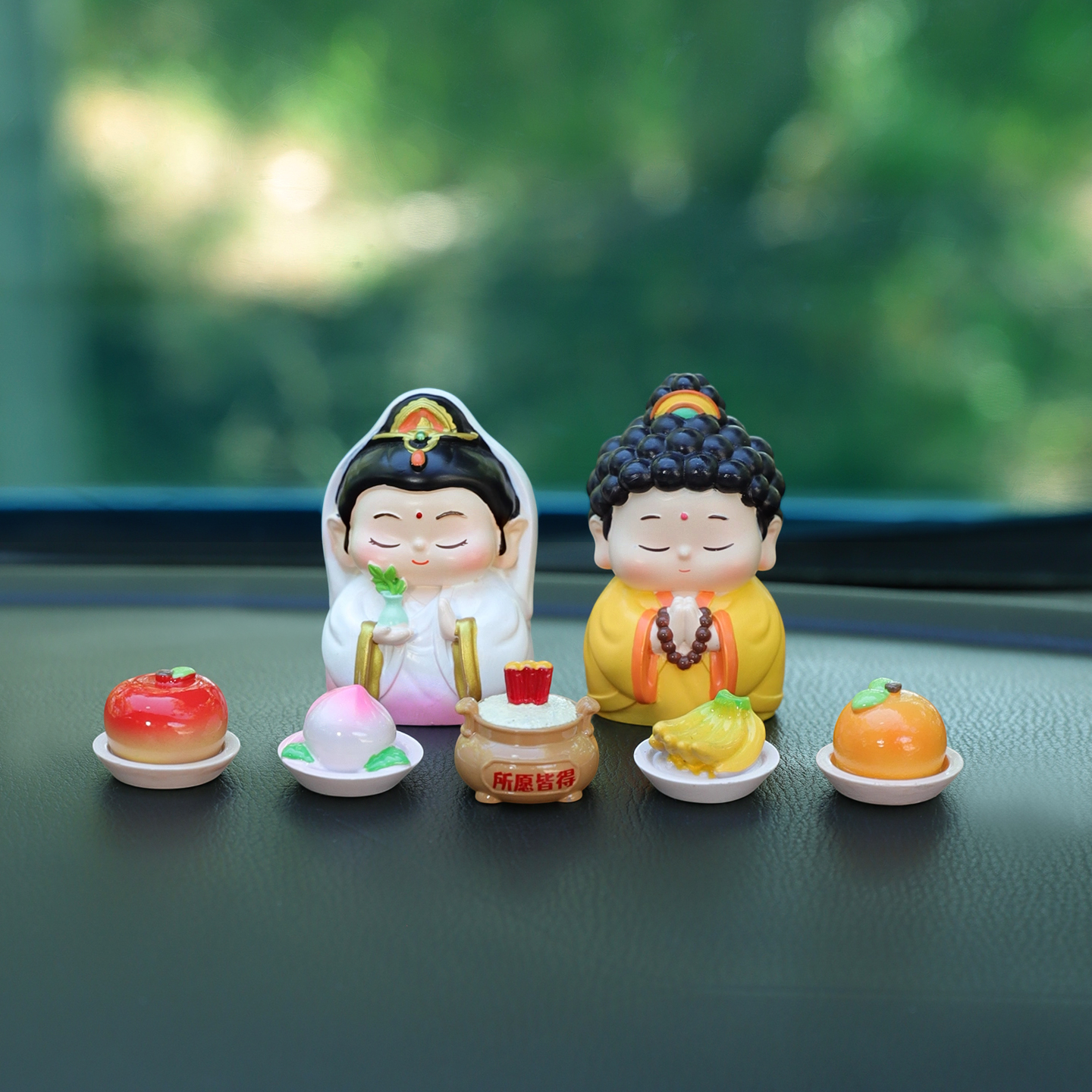 赐福小神仙汽车摆件国潮古风财神观音车载饰品车内保平安装 饰用品