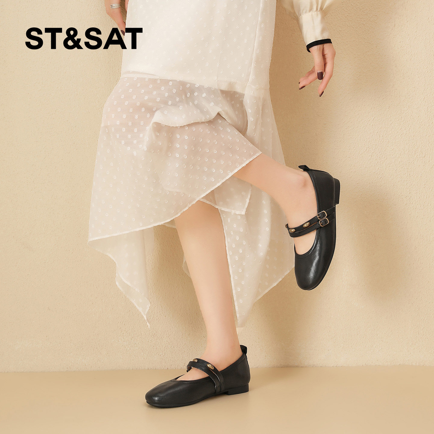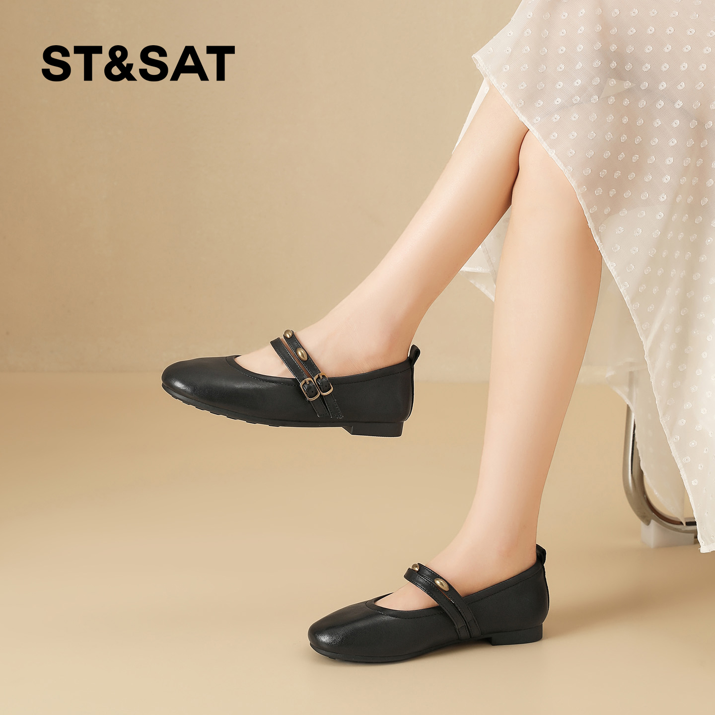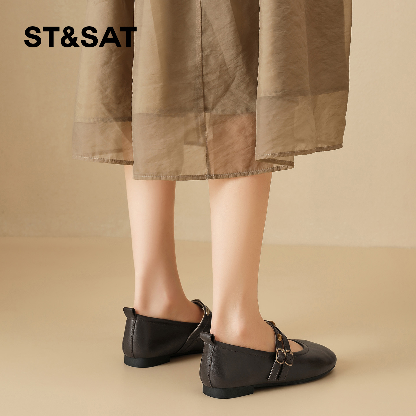 女 羊皮芭蕾玛丽珍单鞋 董洁董璇小酒窝同款 真美诗摩卡慕斯25秋新款