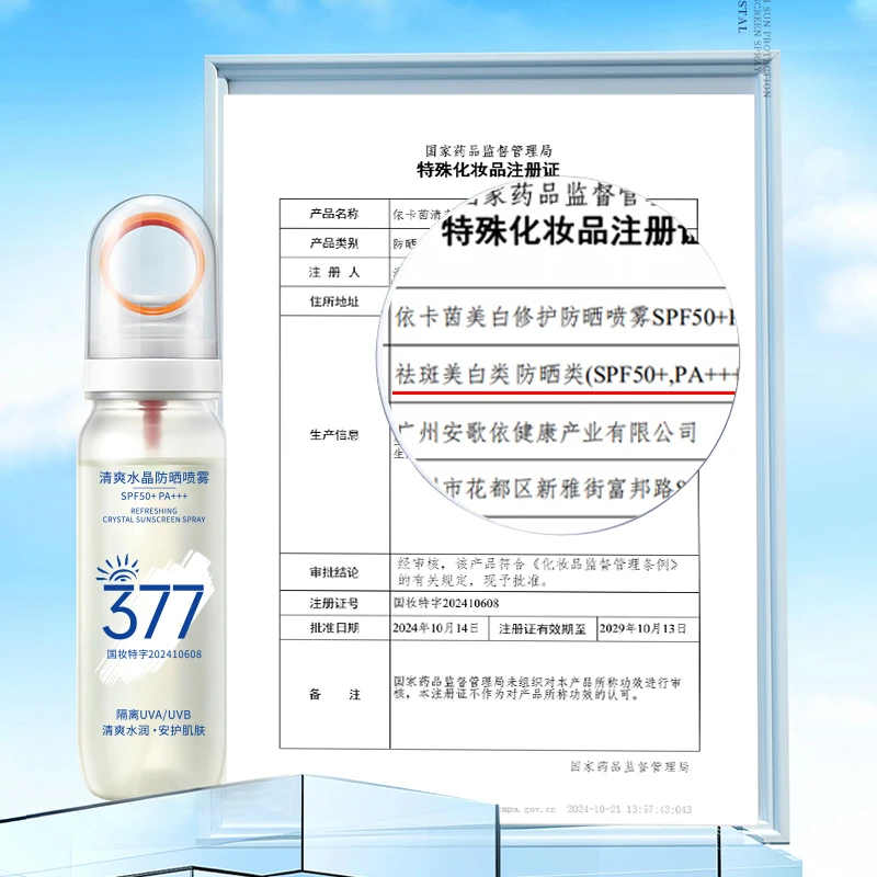 小光圈水晶身体防晒喷雾美白隔离防水防紫外线清爽高铁保湿 便携