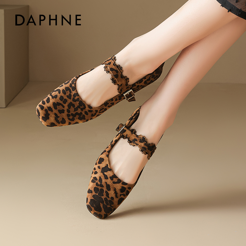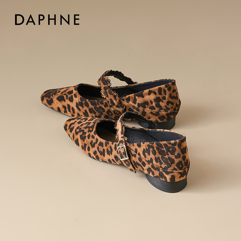 子7H003CQ5 百搭玛丽珍软糯羊皮鞋 TATA他她狂想曲女鞋 秋豹纹单鞋