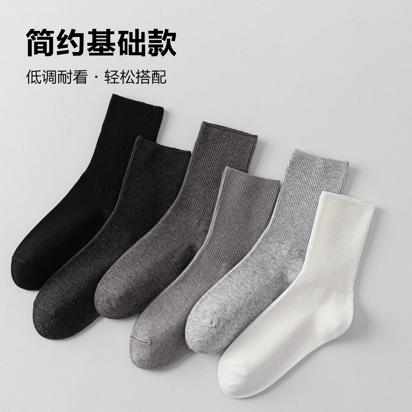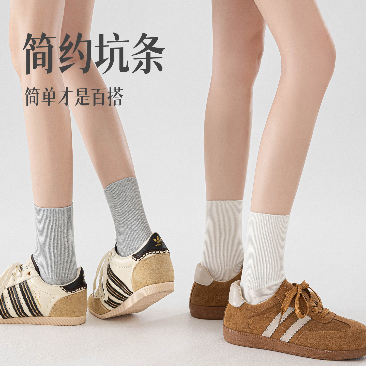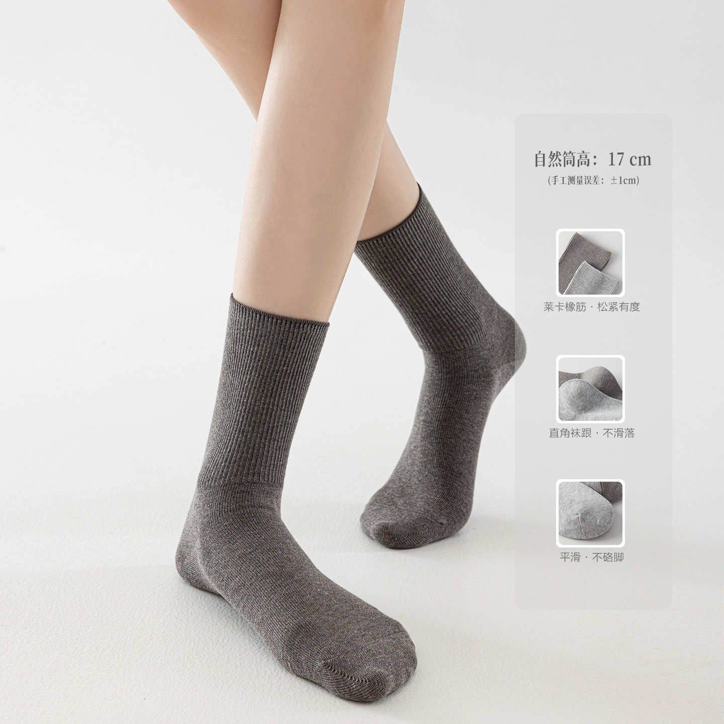 灰色 搭配小皮鞋 简约基础款 双针袜子女中筒袜棉质日系百搭2025新款