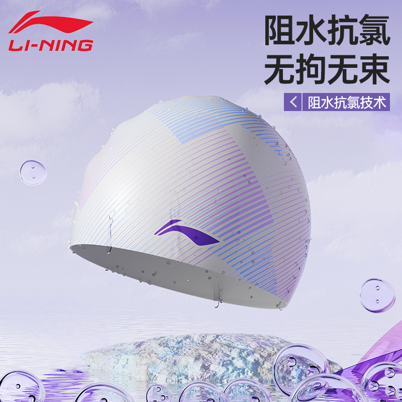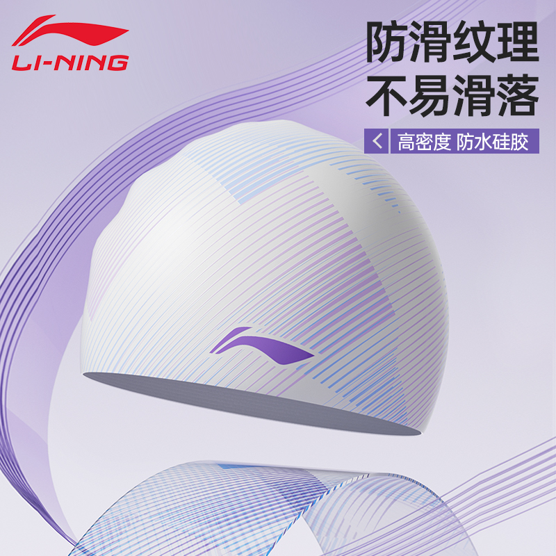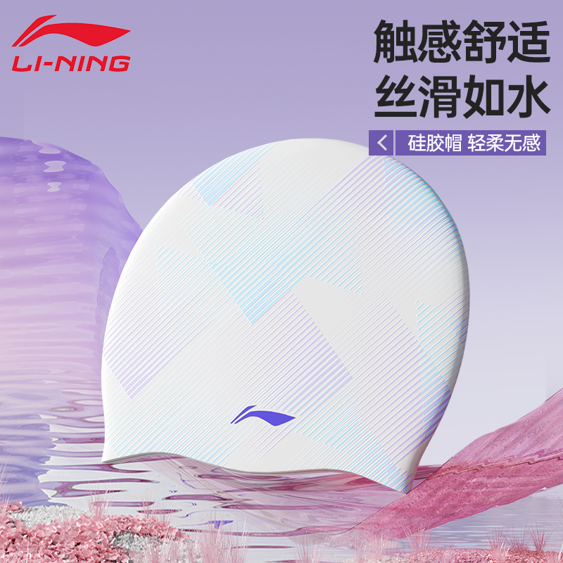 李宁硅胶游泳帽2025新款 女士加大头围不勒长发成人护耳高颜值防水