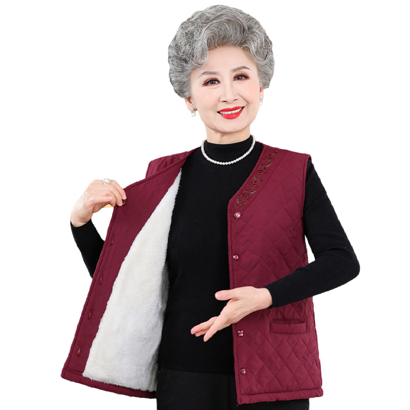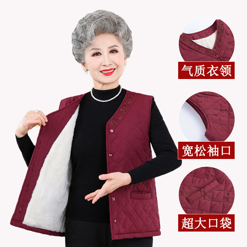 奶奶秋冬加绒马甲女中老年人冬装 加厚坎肩70岁80妈妈保暖背心外套