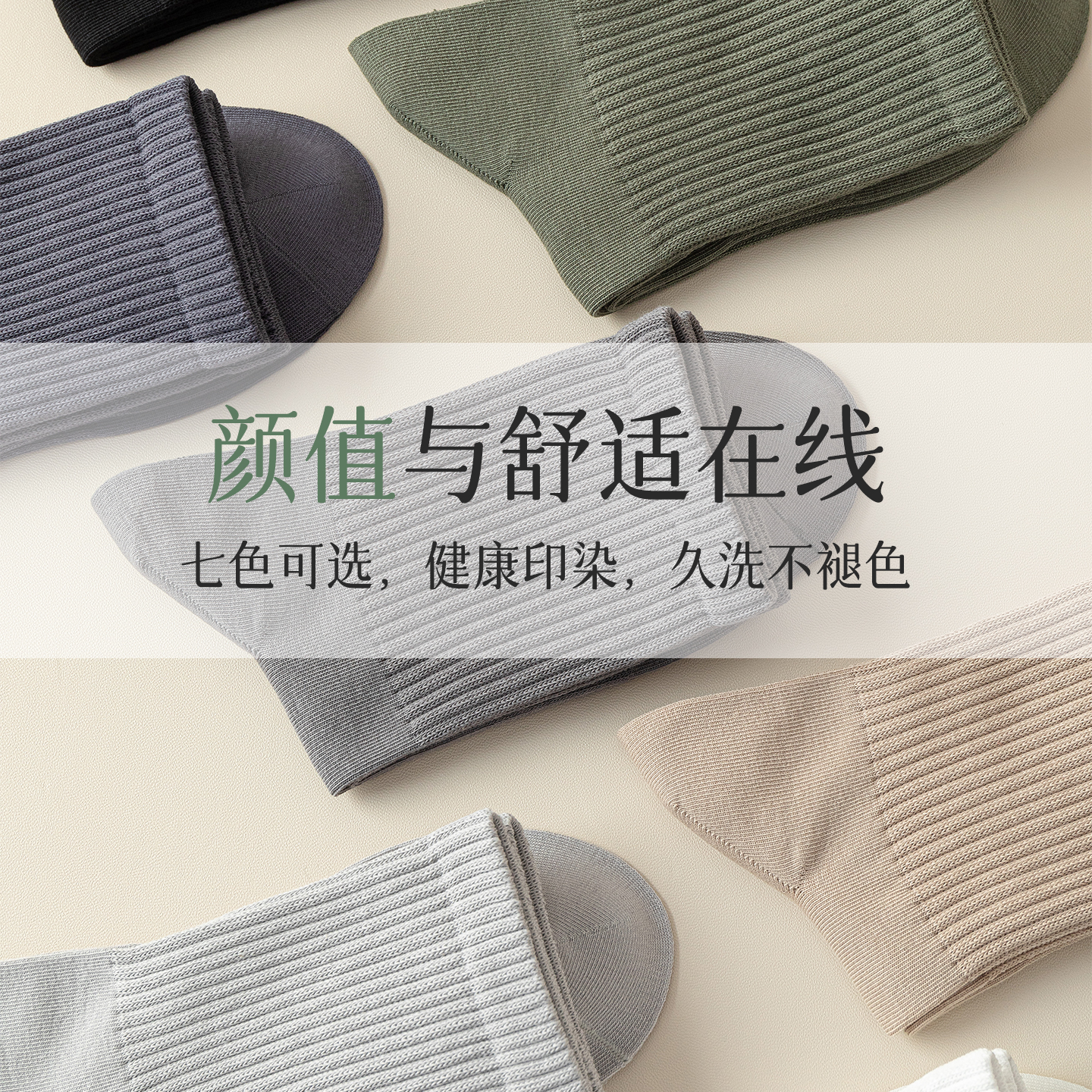 棉伙棉伴海藻袜舒适抗菌防臭男女商务运动纯色裸感中筒袜