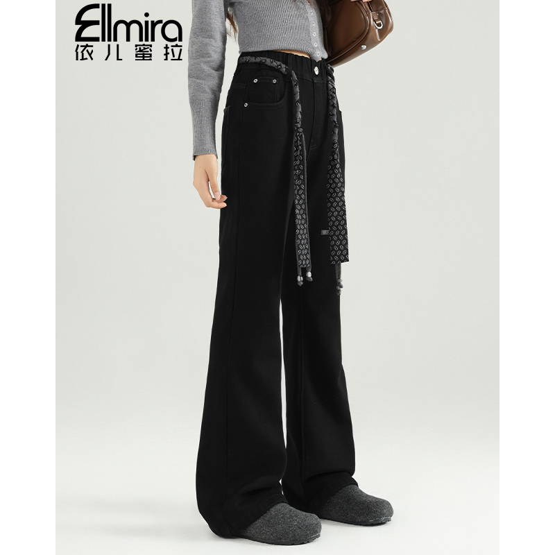 长裤 9587女童微喇裤 喇叭裤 加绒加厚黑色牛仔裤 大童休闲 冬季