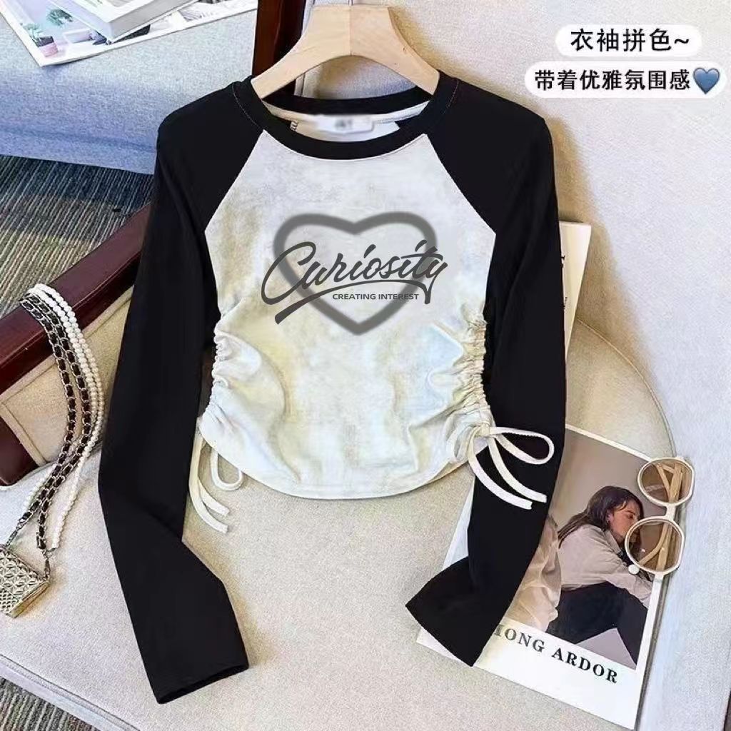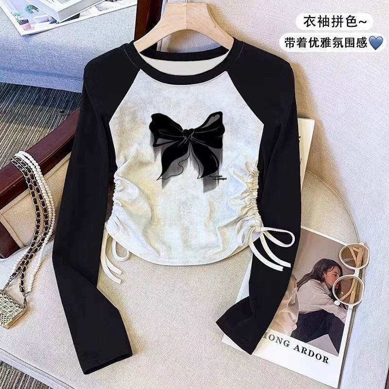 儿童洋气抽绳中大童打底上衣公主B 纯棉T恤2024新款 女童春秋季 长袖