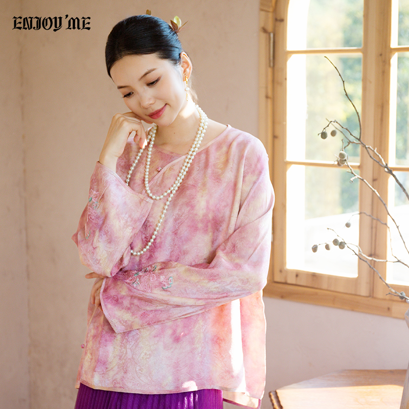 法式 新款 衬衣爆款 长袖 秋水伊人紫色雪纺衬衫 上衣木耳边小衫 女秋装