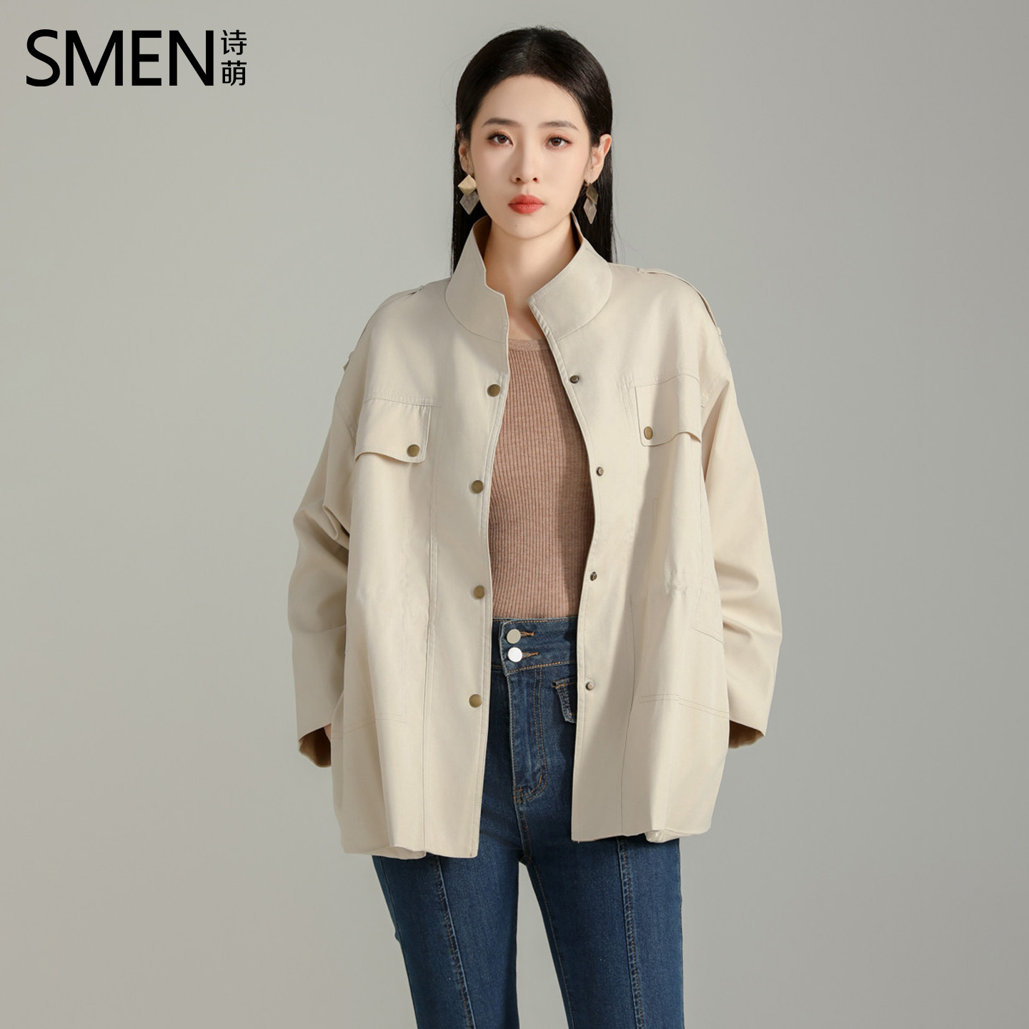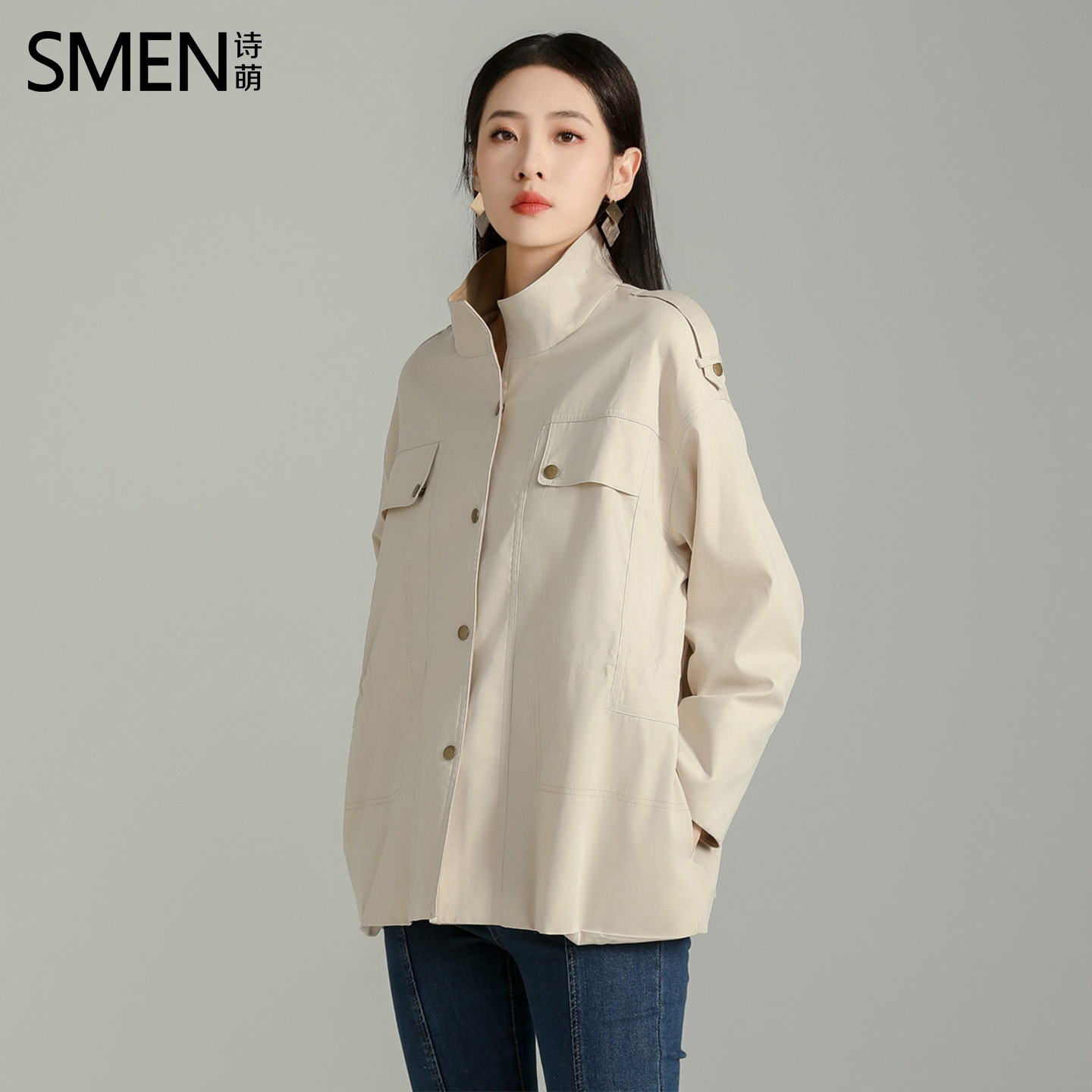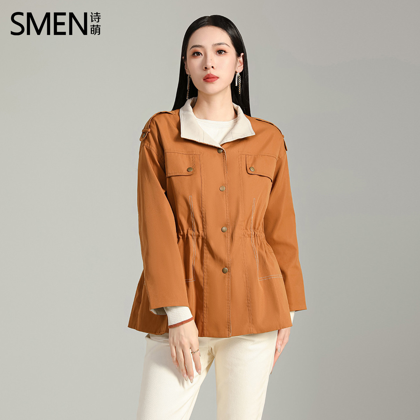 风抽绳小个子风衣女2025秋季 复古工装 新夹克外套 诗·萌美式 Smen